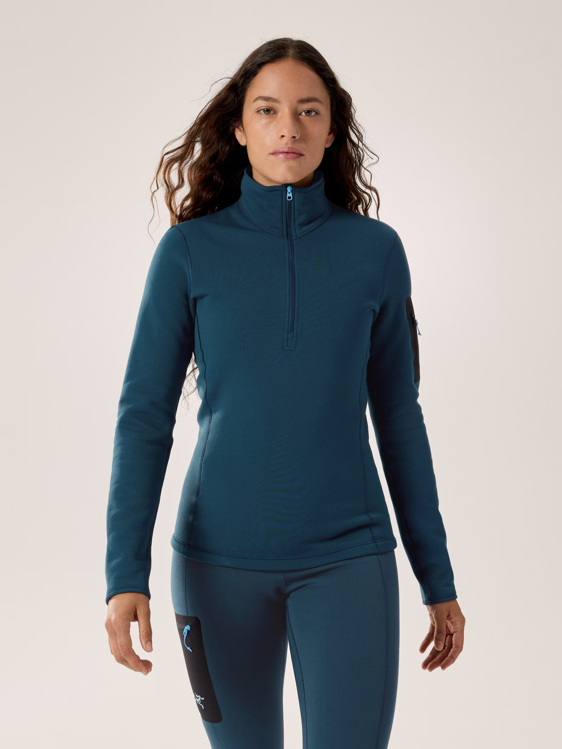 Die Kyanite Baselayer sind für kalte Tage und wechselnde Aktivitätslevel gemacht. Während der Aktivität sorgt das Polartec Power Stretch Pro Material für eine überragende Bewegungsfreiheit. Während der Ruhephasen – oder bei klirrender Kälte – speichert die angeraute Innenseite des Materials die Körperwärme für angenehmen Tragekomfort. Die strapazierfähige Nylonaußenseite des Fleecestoffs hat eine glatte Oberfläche, was sie ideal zum Tragen unter weiteren Lagen macht. Der Stehkragen sorgt für Extrawärme und der lange Reißverschluss für schnelle Belüftung sowie einfaches An- und Ausziehen.