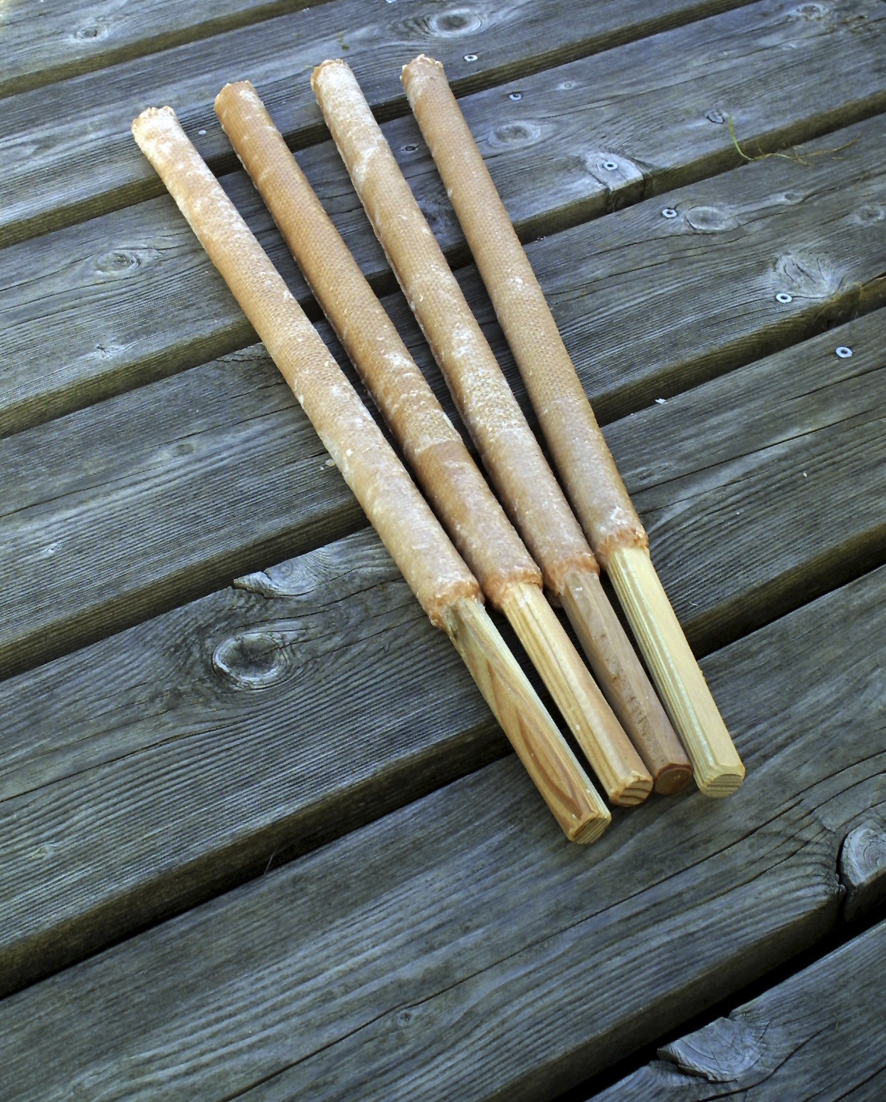Die gemütliche Beleuchtung für Grillfeste, Lagerfeuer, Camps, Lichterketten, Silvesterfeten usw. Wahlweise auch mit Citronelladuft (gegen Insekten). Brenndauer bei Windstille bis zu 100 Minuten. Achtung: Tropfschutz verwenden. Material: Baumwolle und Paraffin, Holzgriff.