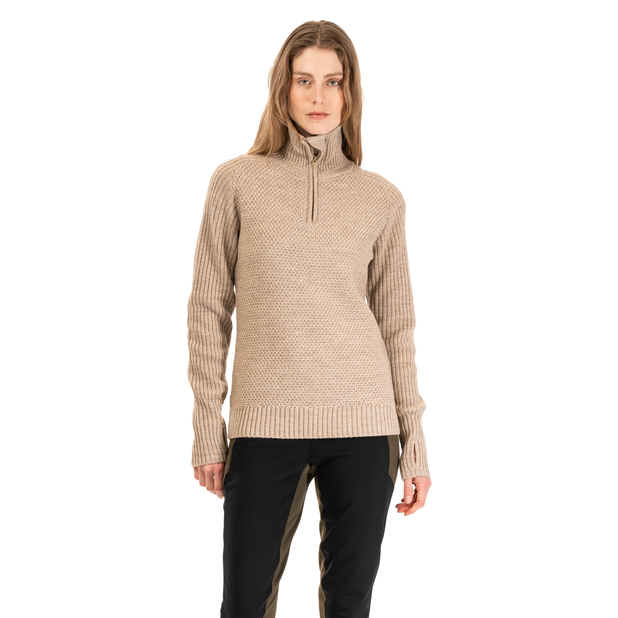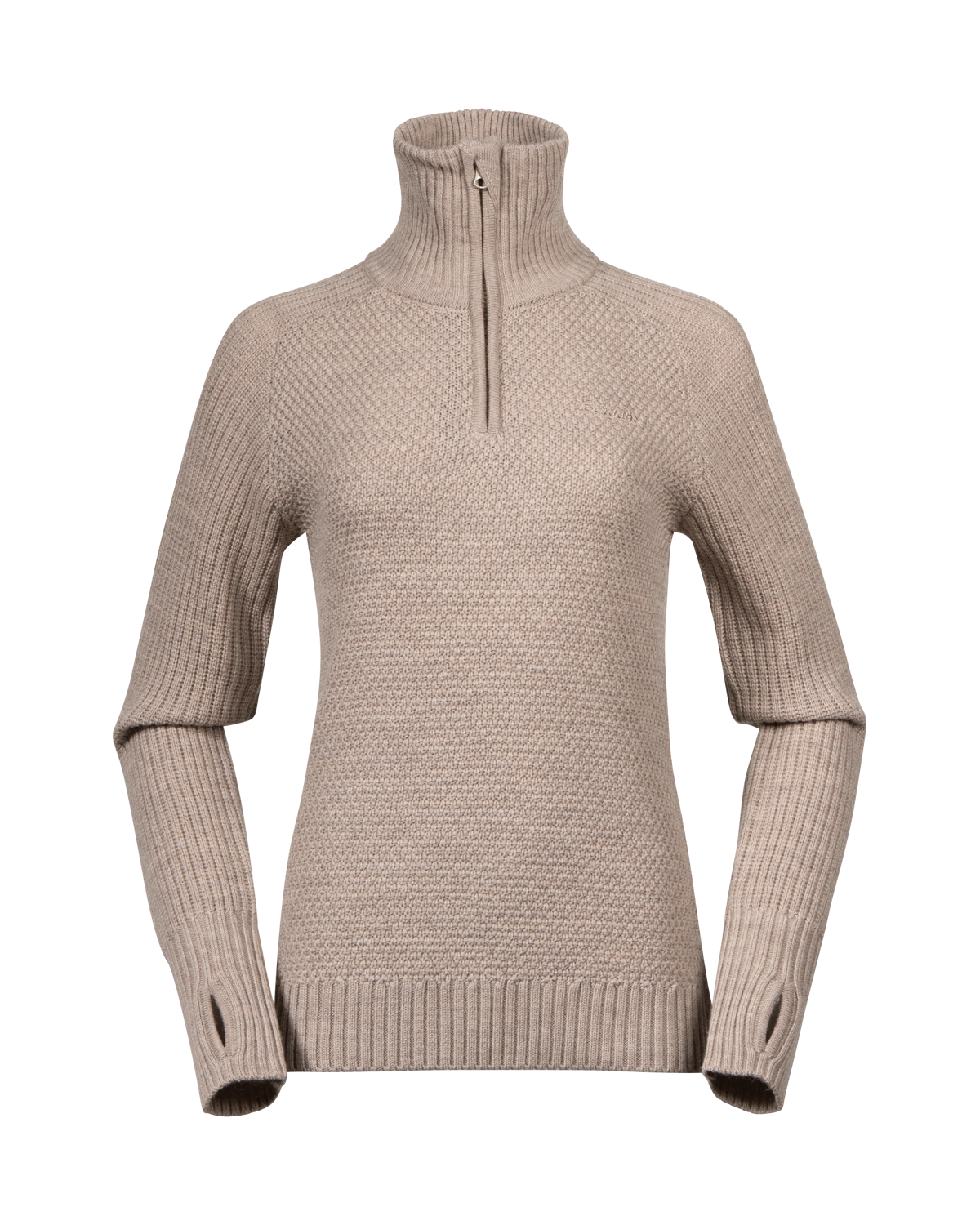 Dicker Pulli aus weicher, trageangenehmer Merinowolle mit extra hohem Kragen und weichem Kinnschutz. Kann solo oder als wärmender Midlayer unter der Hardshelljacke getragen werden.