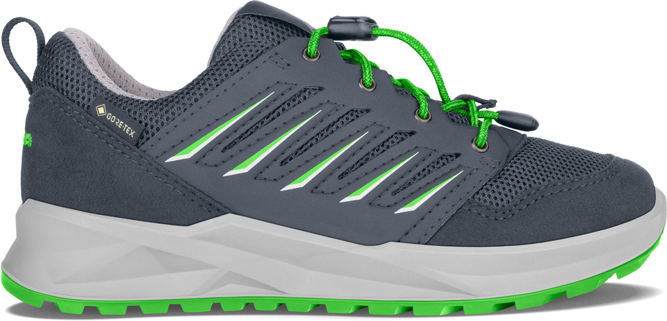 Reinschlüpfen, das Speed-Lacing festziehen und auf geht´s ins nächste Abenteuer. Für alle Entdecker und Detektive ist der neue AXOS GTX LO JUNIOR bestens geeignet. Die flexiblen Alleskönner bestechen vor allem durch ihr sportliches Design und sind darüber hinaus natürlich mit sämtlichen Funktionen ausgestattet, die es für einen Kinder-Outdoorschuh braucht. Bester Komfort dank einer Zwischensohle aus LOWA DynaPU®, ein speziell für Kinder entwickelter Leisten sowie eine wasserdichte und atmungsaktive GORE-TEX-Membran sorgen für optimalen Spielspaß. Bester Komfort in der Stadt oder dem leichten Gelände ist bei der LOWA® URBAN TRAIL JUNIOR durch das eigens dafür optimierte Profildesign garantiert. Hier sind die breiten Profilkanäle so gestaltet, dass sie Flüssigkeit und Schmutz optimal verdrängen. Zudem sorgt die angepasste Profilgestaltung für ein harmonisches Abrollverhalten.