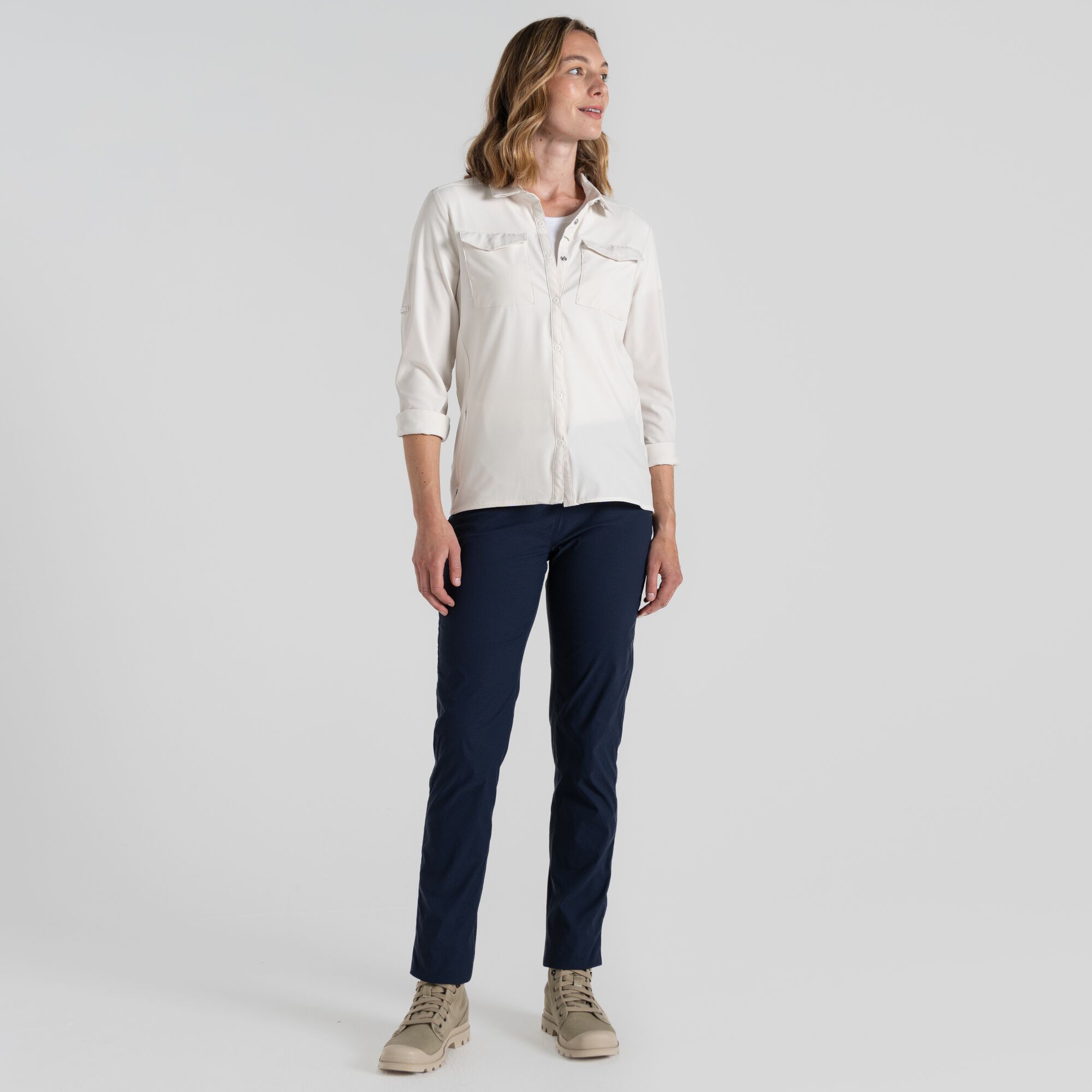 Eine stilvolle Hose von Craghoppers. Die elegante „Milla“ verzaubert jedes Abenteuer mit einem Hauch Riviera-Flair – ob man sich nun in der Wildnis oder in der Zivilisation befindet. Sie ist angenehm dehnbar, wirkt geruchshemmend, schützt vor Sonne, wehrt Insekten ab und fordert kaum Pflegeaufwand, sodass man Abenteuer in Nah und Fern unbeschwert genießen kann.