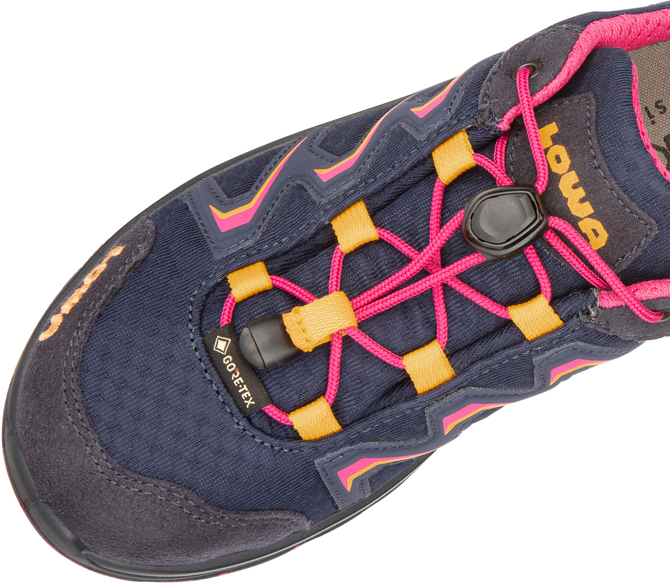 Ob nun beim Spielen oder den täglichen Weg zur Schule - der Multifunktionsschuh mit seiner leichten Konstruktion eignet sich optimal für große Abenteuer und kleine Füße. Einfach hineinschlüpfen und ab gehts zum Spielen nach draußen - bei jedem Wetter und in jedem Gelände. Der praktische Clou dabei: Der MADDOX GTX LO JUNIOR verfügt über die praktische Speed Lacing-Technologie, um möglichst schnell einsatzbereit zu sein. Die scharfkantig gestaltete Profilgestaltung der Gummisohle LOWA® ENDURO EVO JUNIOR ist selbstreinigend und unterstützt beim Spielen und Toben auf unterschiedlichen Böden.