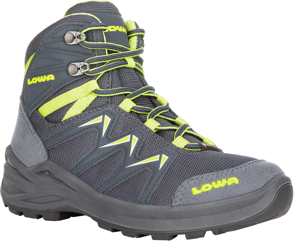 Wenn kindliche Abenteuerlust und strapazierfähige Multifunktionsschuhe aufeinandertreffen, dann kann am Ende eigentlich nur ein perfekter Kinderschuh dabei herauskommen. Und weil die Kids ihren großen Vorbildern gerne nacheifern, gibts vom Modell für Erwachsene mit dem INNOX PRO GTX MID JUNIOR nun auch eine Variante für die kleinen Füße. Dabei hält das GORE-TEX-Futter die Füße zuverlässig trocken, während die direkt angespritzte Zwischensohle aus LOWA DynaPU® ein natürliches Abrollverhalten sowie einen hohen Komfort ermöglicht. Für multifunktionale Outdooreinsätze der kleinen Abenteurer wurde die Performance-Sohle LOWA® MULTI TRAC® KIDS konzipert. Die dreieckige Stollenform zeigt beste Eigenschaften bergauf und bergab auf unterschiedlichen Böden. Die abriebfeste flexible Laufsohle punktet durch ein angenehmes Abrollverhalten und Langlebigkeit – auch bei vielen Einsätzen auf Asphalt.