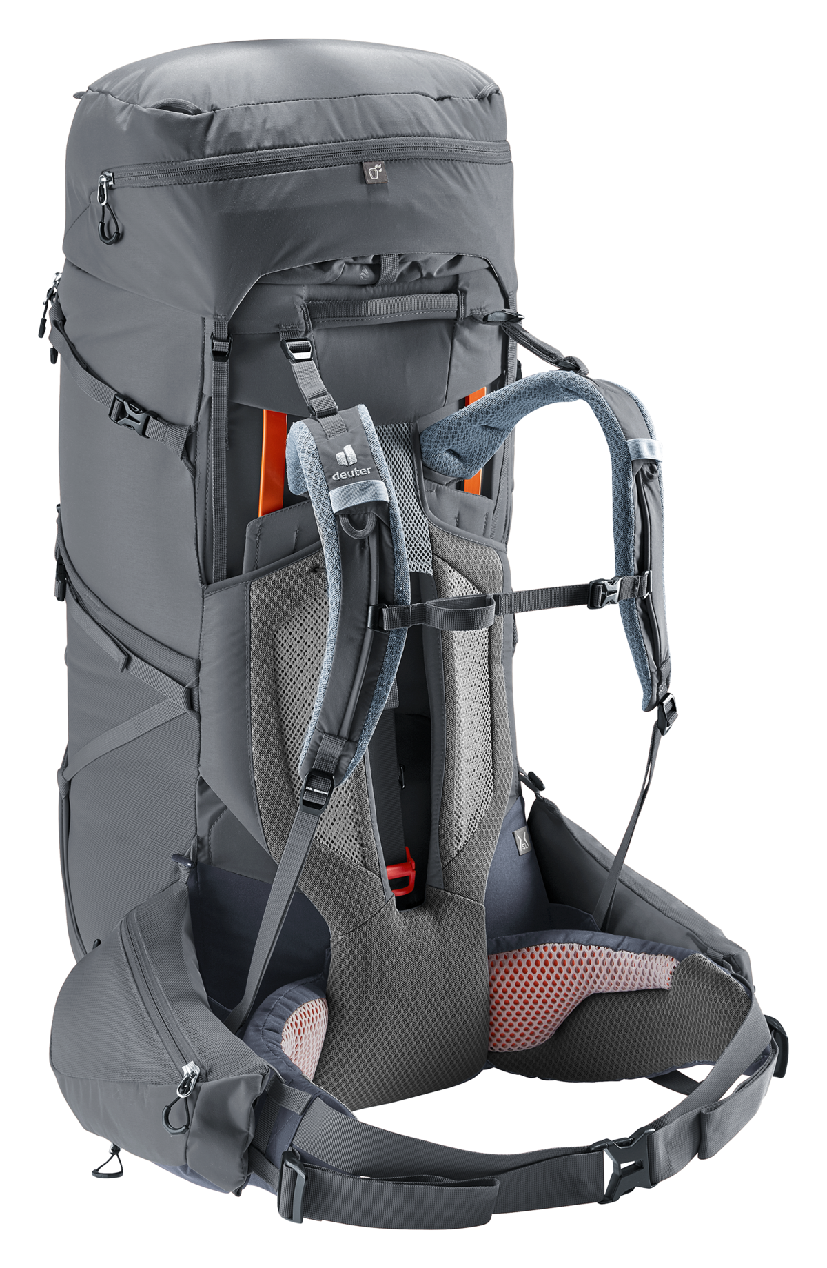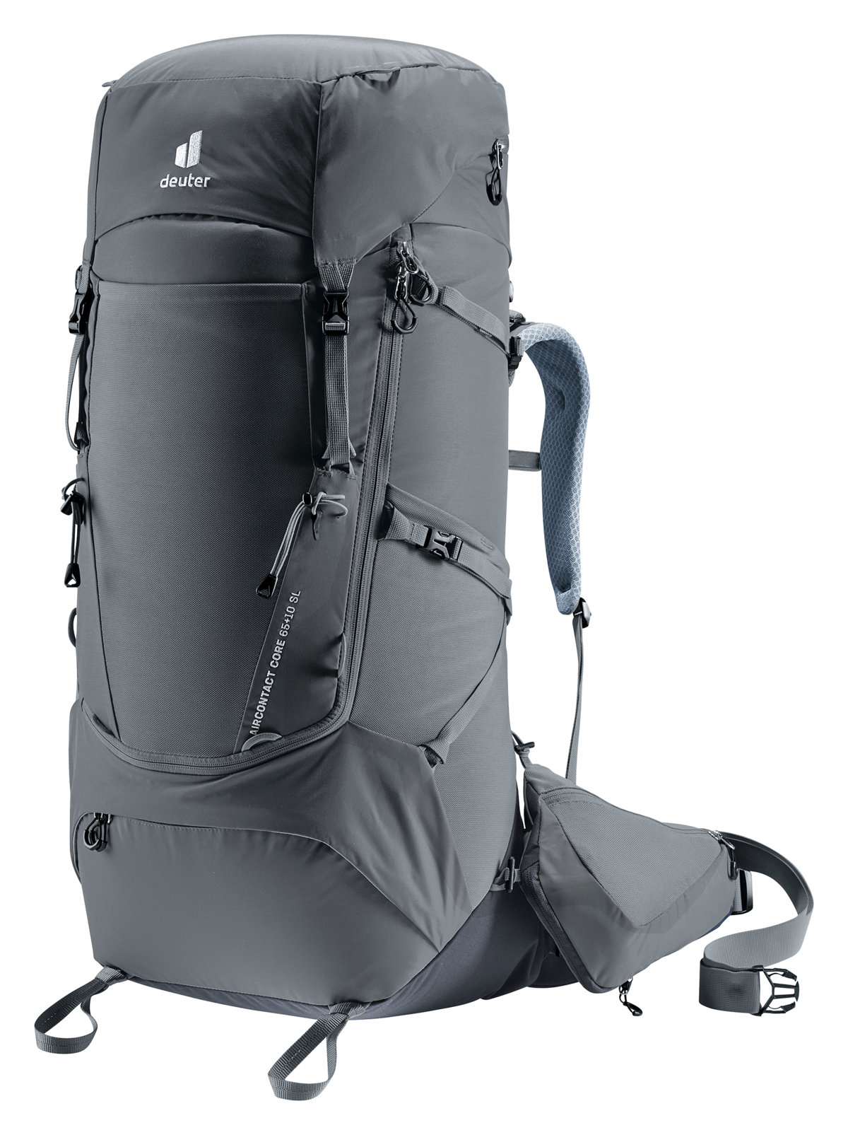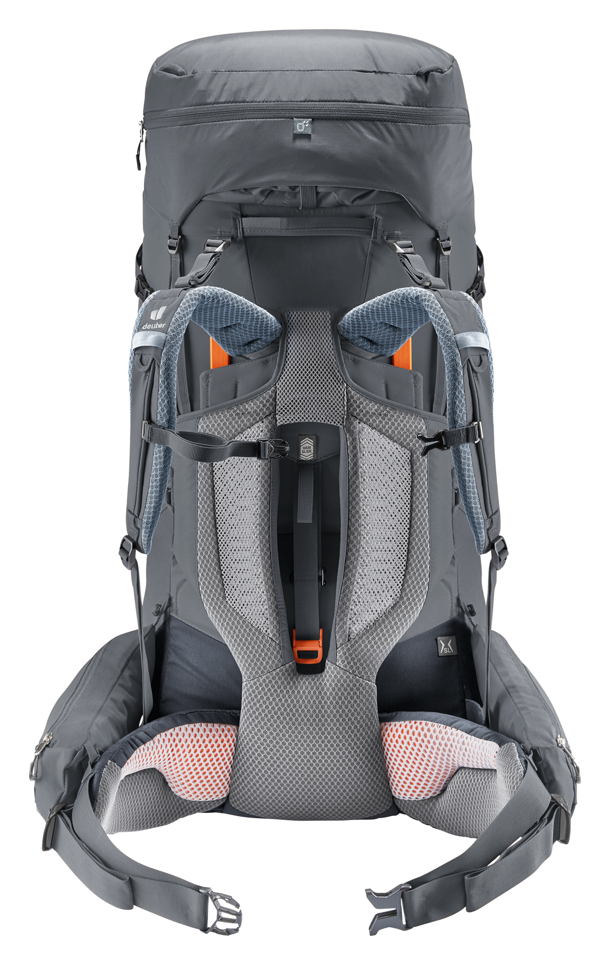 Für hohen Tragekomfort und optimale Lastverteilung sorgen das Aircontact-Rückensystem mit Air Spacer Mesh und großem Belüftungskanal, die bequemen Schulterträger, die beweglichen Hüftflossen und das ergonomische Lumbalpad. Eine große, J-förmige Frontöffnung gewährt mühelosen und schnellen Zugang auf den Rucksackinhalt. Zudem bieten die abnehmbaren 3 Liter Hüftflossentaschen mehr Volumen für persönliche Gegenstände. Und auch Trinkflaschen bis 1,5 Liter finden in einer ausklappbaren Tasche Platz.