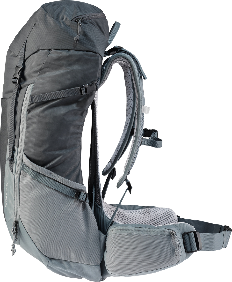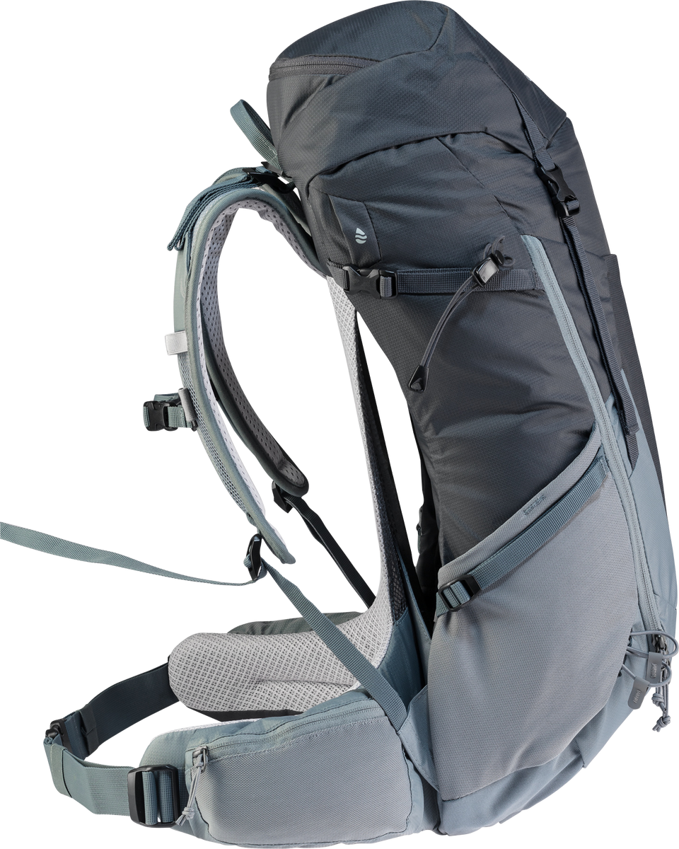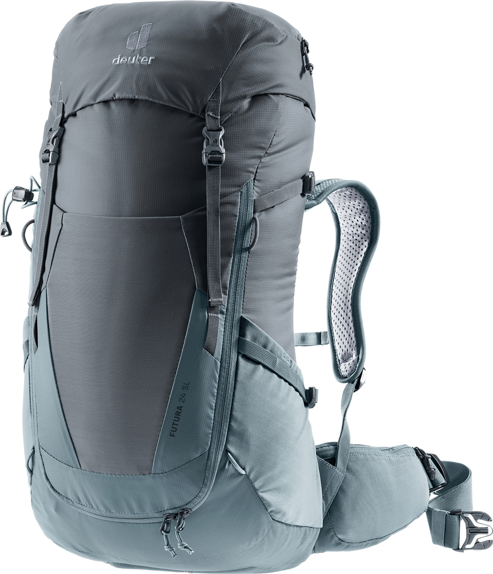Der Futura SL ist aufgrund des kürzeren Rückens, der schmäleren Schulterträger und der konisch geformten Hüftflossen speziell auf die weibliche Anatomie abgestimmt und sorgt damit für erhöhten Tragekomfort auf längeren Tages- und Mehrtageswanderungen. Zudem bietet das neue Mesh des Aircomfort Rückensystem maximale Belüftung und verringert das Schwitzen damit um bis zu 25 %. Zudem verschafft die große Frontöffnung einen leichten Zugriff auf und einen guten Überblick über den Inhalt des Rucksacks. Das Hauptmaterial der Futura-Serie besteht aus bluesign(R)-zertifiziertem Material.
