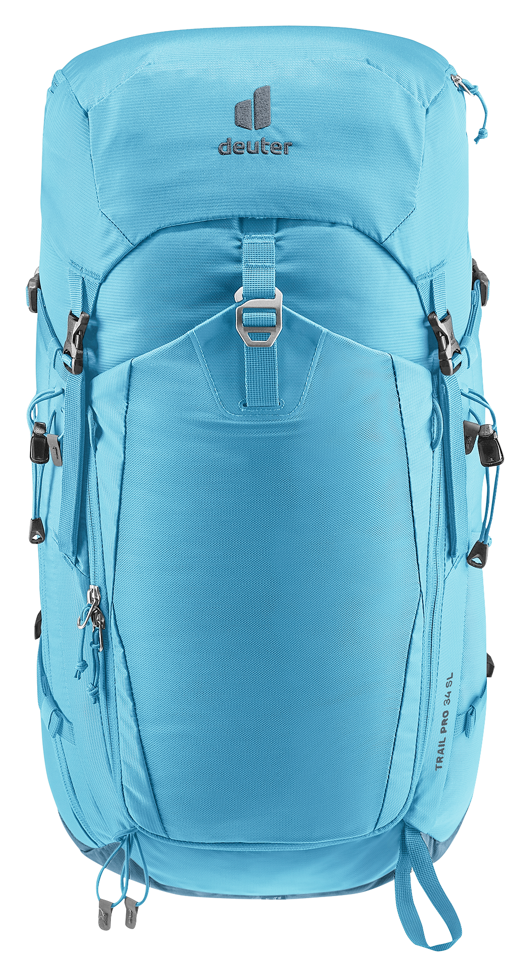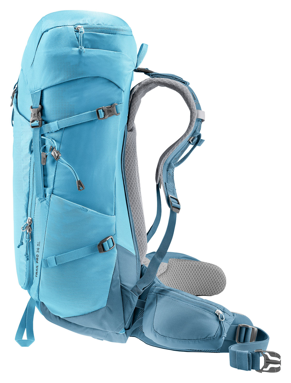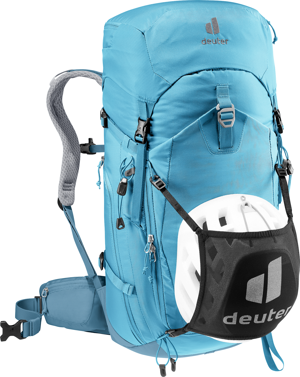 - Regenhülle; Zwei Pickelhalterungen; SOS-Label mit Notrufnummern; anschmiegsame Hüftflossen; Netz-Hüftflossen und -Schulterträger mit Karabiner-Fixierung; elastische Fronttasche; geräumiges Deckelfach; Reißverschluss-Seitentasche und elastische Seitentasch