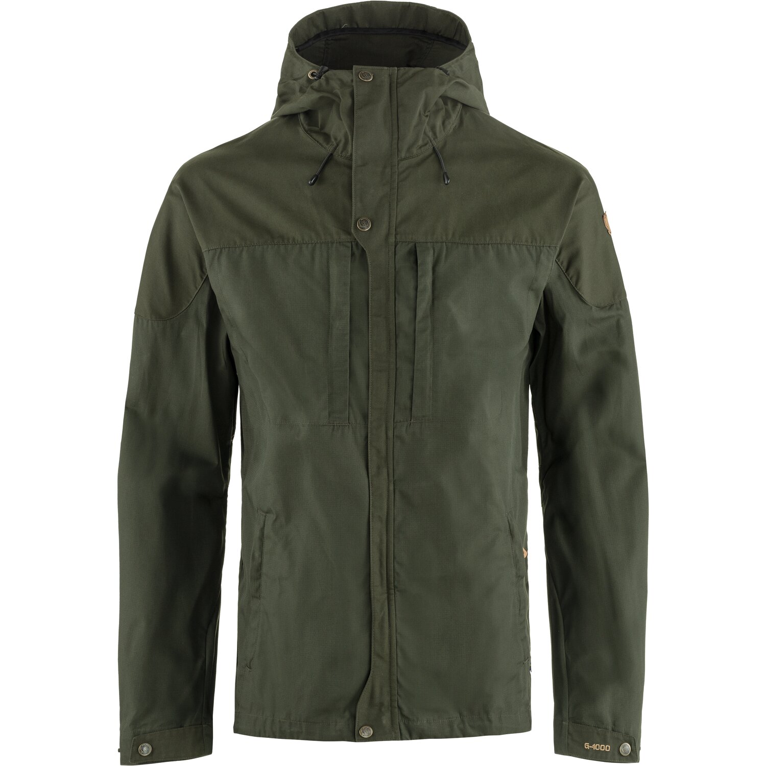 Hüftlange Outdoor-Jacke mit fester, regulierbarer Kapuze und verlängerter Rückenpartie. Ebenso bequem auf Wanderungen wie beim Radfahren von und zur Arbeit. Sie schützt vor Wind und leichten Schauern, während das Material gleichzeitig sehr atmungsaktiv ist. Dadurch schwitzt man nicht so stark wie in einer völlig wasserdichten Jacke. Aus G-1000 Lite mit G-1000 Original im Schulterbereich. Zwei vertikale Brusttaschen und zwei Eingrifftaschen, alle mit Patte. Zweiwege-Frontreißverschluss hinter einer Schutzleiste mit Druckknöpfen unten, im Brustbereich und am Kinn. Unten regulierbar, Druckknöpfe an den Ärmelabschlüssen.