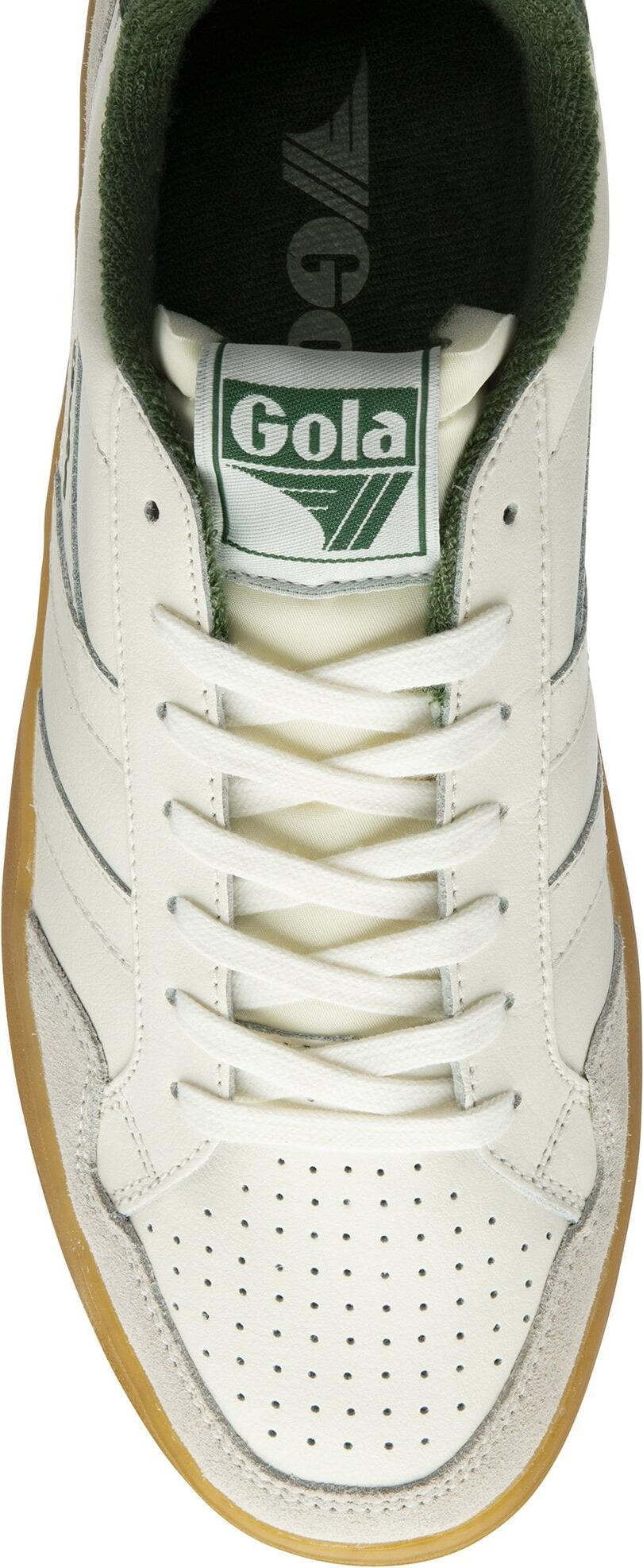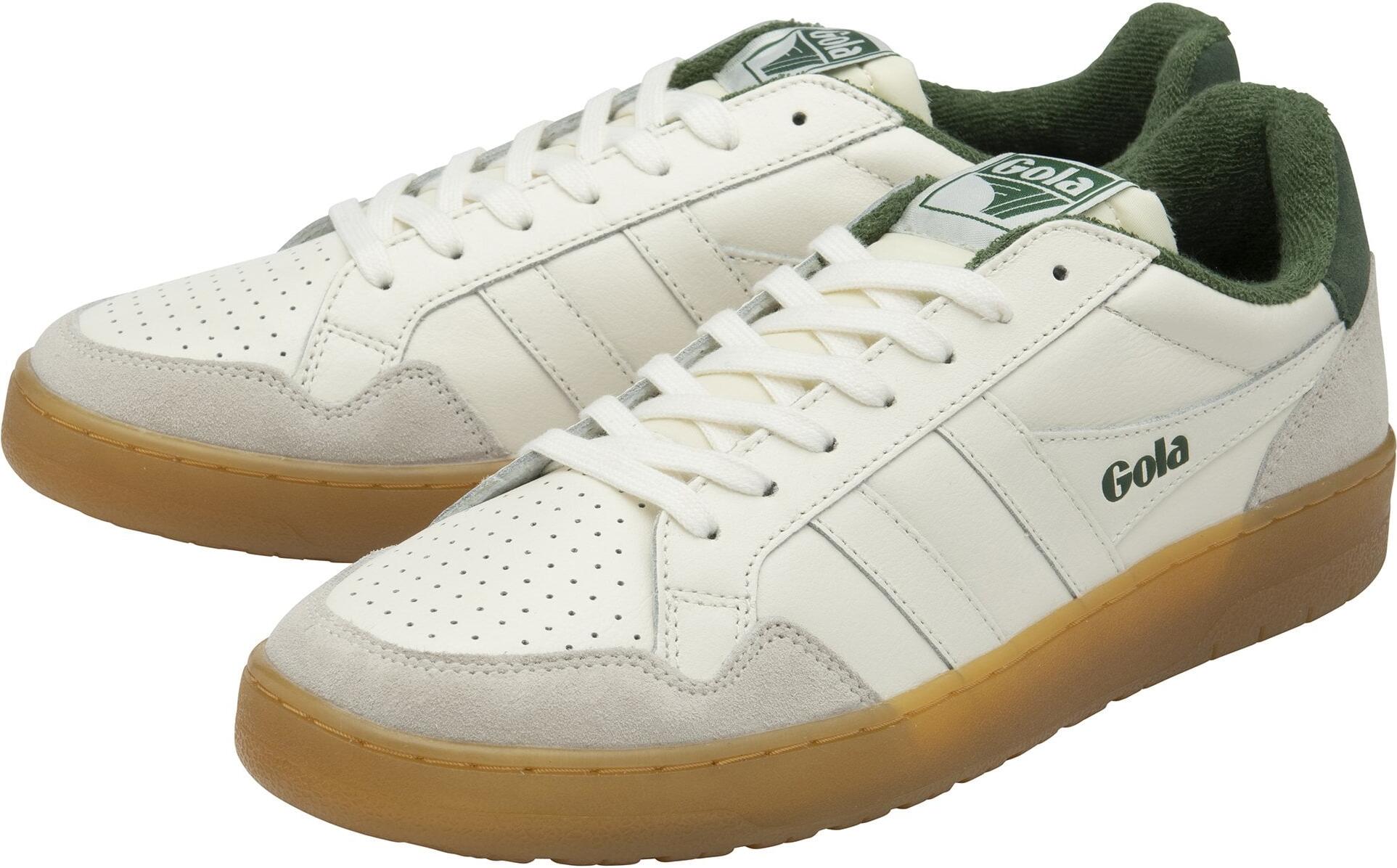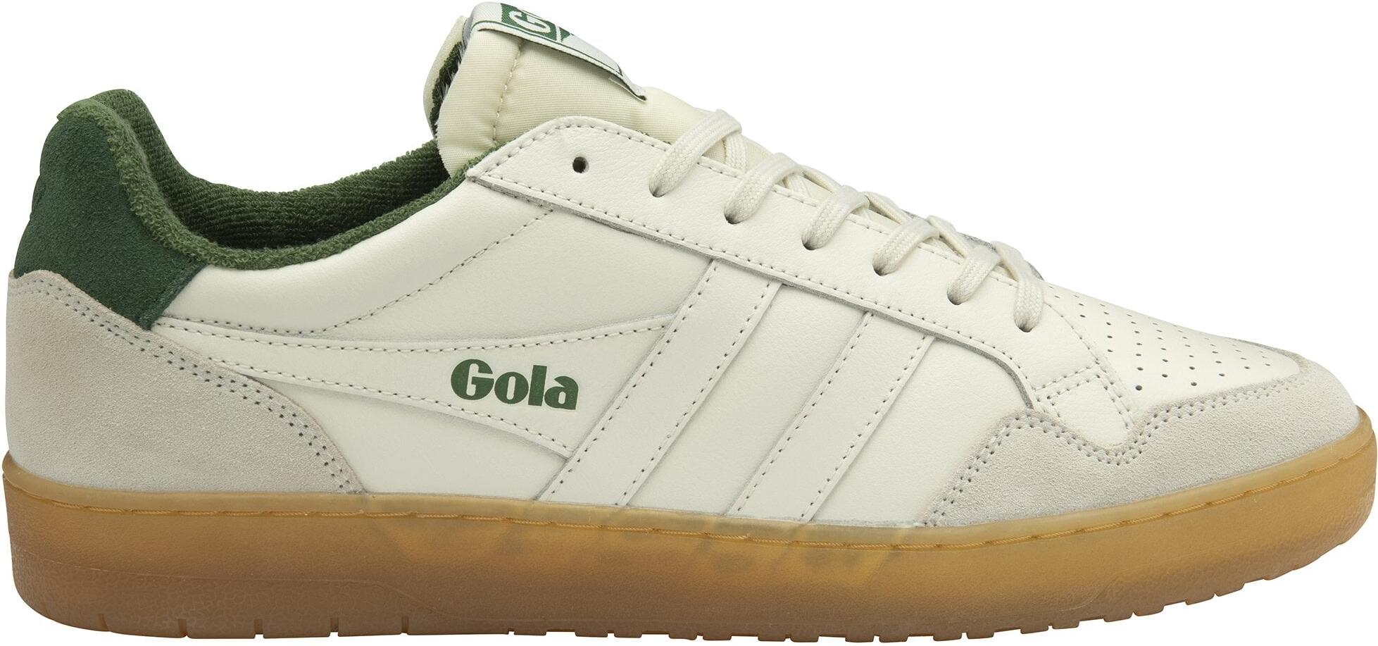 Der Gola Eagle '86 für Herren ist die perfekte Wahl für alle, die den klassischen Court-Stil lieben. Mit seinem minimalistischen Design und den vom Tennis inspirierten Farben in Off-White und Navy Blue bringt dieser Sneaker einen Hauch von Retro in Ihren Alltag. Die brandneue Gum-Sohle unterstreicht nicht nur das Tenniserbe von Gola, sondern sorgt auch für ein stilvolles Flair, das sich leicht mit verschiedenen Freizeitoutfits kombinieren lässt. Diese klassischen Turnschuhe sind nicht nur ein optisches Highlight, sondern bieten auch hohen Tragekomfort. Dank des altmodischen Frottee-Futters bleiben Ihre Füße warm und gemütlich, was sie ideal für die kühleren Tage macht. Die gefütterte Innenseite sorgt für zusätzliche Wärme und Komfort, während das authentische Gola-Design die sportliche Vintage-Ästhetik perfekt abrundet. Ob für einen entspannten Tag in der Stadt oder ein Treffen mit Freunden – der Gola Eagle '86 ist der ideale Begleiter für stilbewusste Männer, die Wert auf Qualität und Design legen. Lassen Sie sich von der Kombination aus Retro-Charme und modernem Komfort überzeugen und setzen Sie ein modisches Statement.