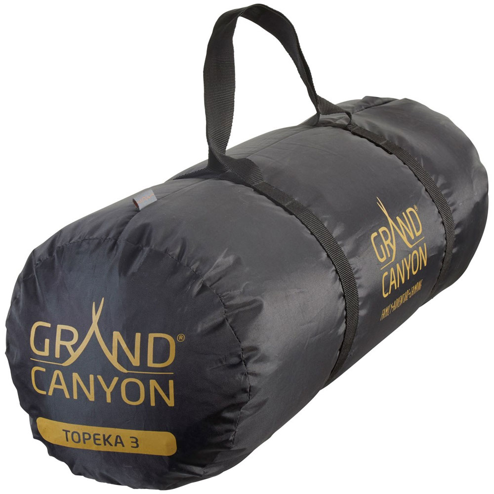 Das Grand Canyon Topeka 3 ist ein vielseitiges Kuppelzelt für bis zu drei Personen und ideal für Campingausflüge und Kurztrips geeignet. Mit seiner kuppelförmigen Apsis bietet es viel Platz und zusätzlichen Stauraum, während der Aufbau schnell und unkompliziert erfolgt. Dank seiner windstabilen Konstruktion ist das Zelt auch bei unbeständigem Wetter zuverlässig. Das Innenzelt kann separat aufgestellt werden, während die Außenplane abnehmbar ist. Die GrandFlow-Belüftung an der hinteren Außenplane sorgt für eine verbesserte Luftzirkulation, die sich stufenweise regulieren lässt. Das Zelt verfügt über eine wasserdichte Plane sowie einen wasserdichten Boden, um optimalen Schutz vor Nässe zu bieten. In der vorderen Apsis mit integriertem Gestängeboden lässt sich schmutzige oder feuchte Ausrüstung bequem lagern. Reflektierende Abspannleinen erhöhen die Sichtbarkeit bei Dunkelheit, und die Zeltstangen aus Fiberglas sowie die Heringe aus Stahl sorgen für zusätzliche Stabilität. Eine praktische Trage- und Verstautasche mit Logo-Details rundet das Gesamtpaket ab, sodass das Topeka 3 leicht transportiert und platzsparend verstaut werden kann.