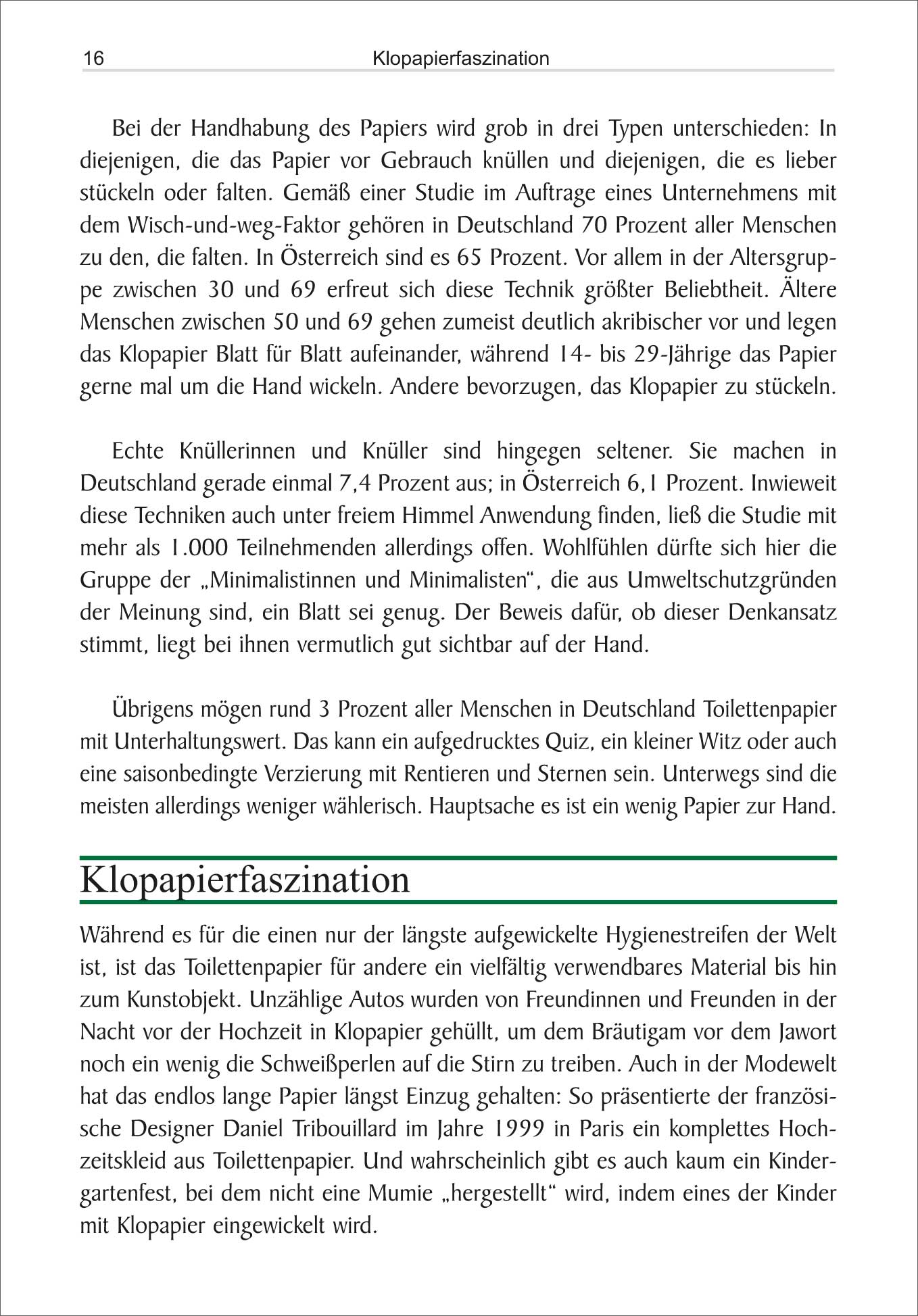 Shit happens – im echten Leben und auch in freier Wildbahn. Und früher oder später wird jeder Outdoorer erkennen, dass es weit komplizierter sein kann als vermutet, sein kleines oder großes Geschäft an der frischen Luft zu erledigen. Dieser Ratgeber nähert sich dem Thema mit viel Humor und ohne Berührungsängste. Kurze Ausflüge zur Toilettenkultur in verschiedenen Ländern leiten unterhaltsam zum eigentlichen Thema des Buches über: praxistauglichen Tipps zur Verrichtung des Geschäfts in freier Wildbahn. Erhöht wird der Nutzwert des handlichen und trotz allen Humors ernst gemeinten Ratgebers durch zahlreiche Produkttipps für praktische Hilfsmittel – vom Klappspaten bis zur faltbaren Papptoilette.