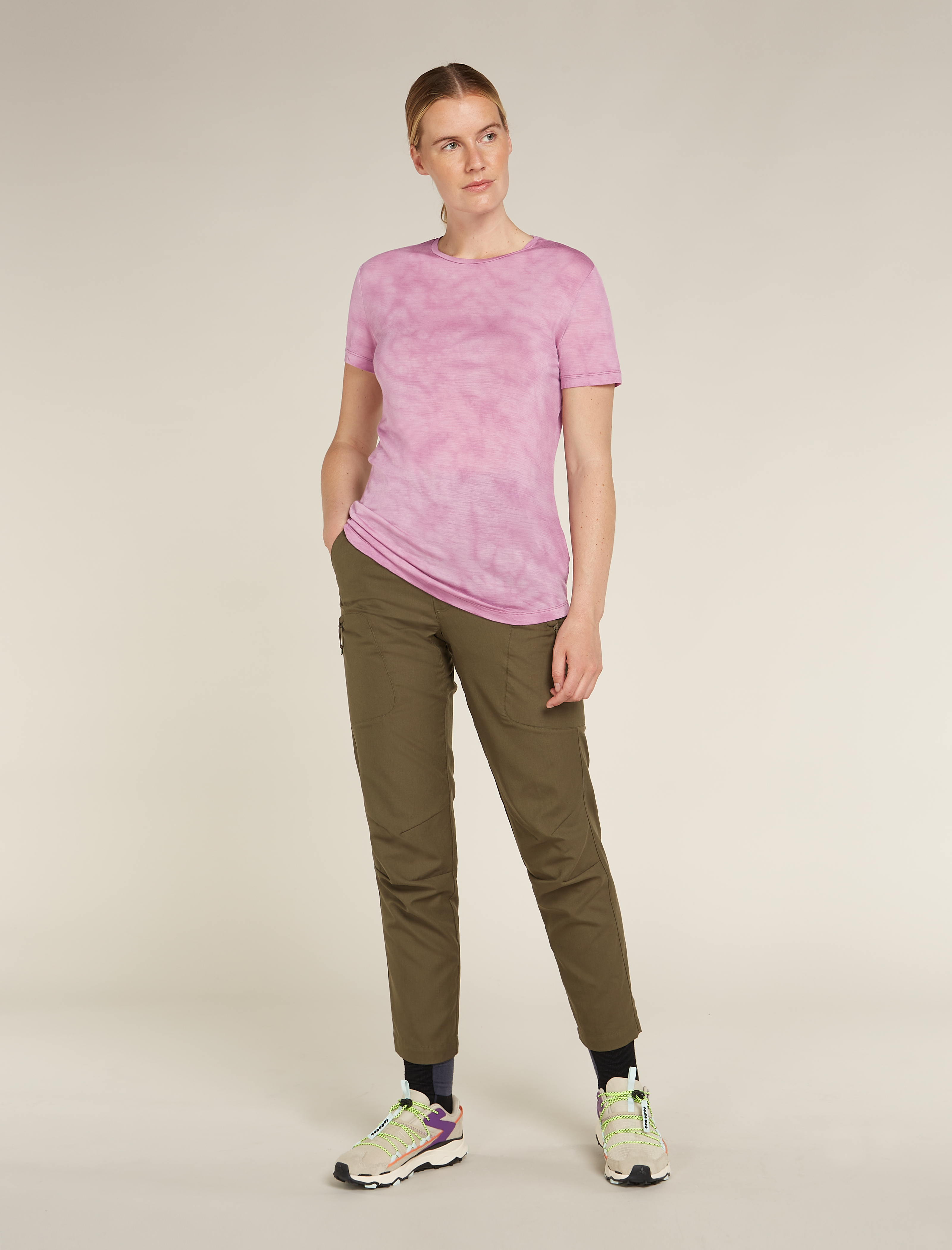 Das Merinomix 125 Cool-Lite™ Sphere T-Shirt Cloud Dye ist ein weiches, komfortables und vielseitiges Funktionsshirt zum Laufen, Wandern und für sämtliche sportliche Aktivitäten bei warmen Bedingungen. Dieses Shirt besteht aus icebreakers Cool-Lite™, einer Mischung aus TENCEL™ Lyocell und Merinowolle, die auf natürliche Weise kühlend und geruchshemmend ist, wenn du in Bewegung bist. Versetzte Schulternähte verhindern, dass es beim Tragen eines Rucksacks zu Reibung kommt, und das verlängerte Rückenteil bietet ein Extra an Bedeckung. Der Allover-Print ist inspiriert von den erdigen, tonalen Mustern der Natur. Weiche Merinowolle und TENCEL™ Lyocell, ein nachhaltiges plastikfreies Lyocell, werden zu icebreaker Cool-Lite™ kombiniert, ein leichtes, atmungsaktives und schnelltrocknendes Material. Inspiriert durch die Natur macht sich icebreaker die Funktionseigenschaften von Naturfasern zunutze, um eine Alternative zu synthetischer Kleidung zu bieten.