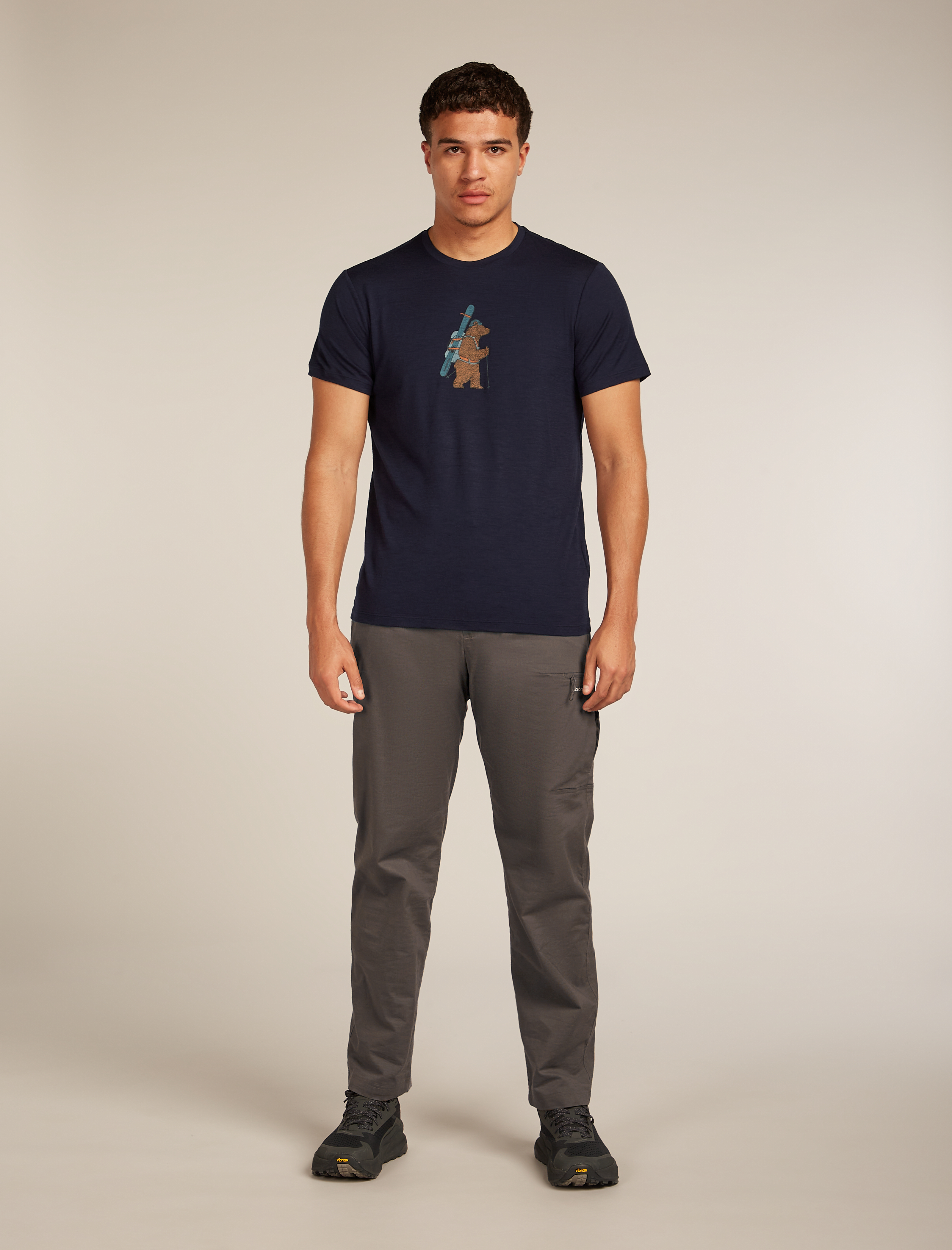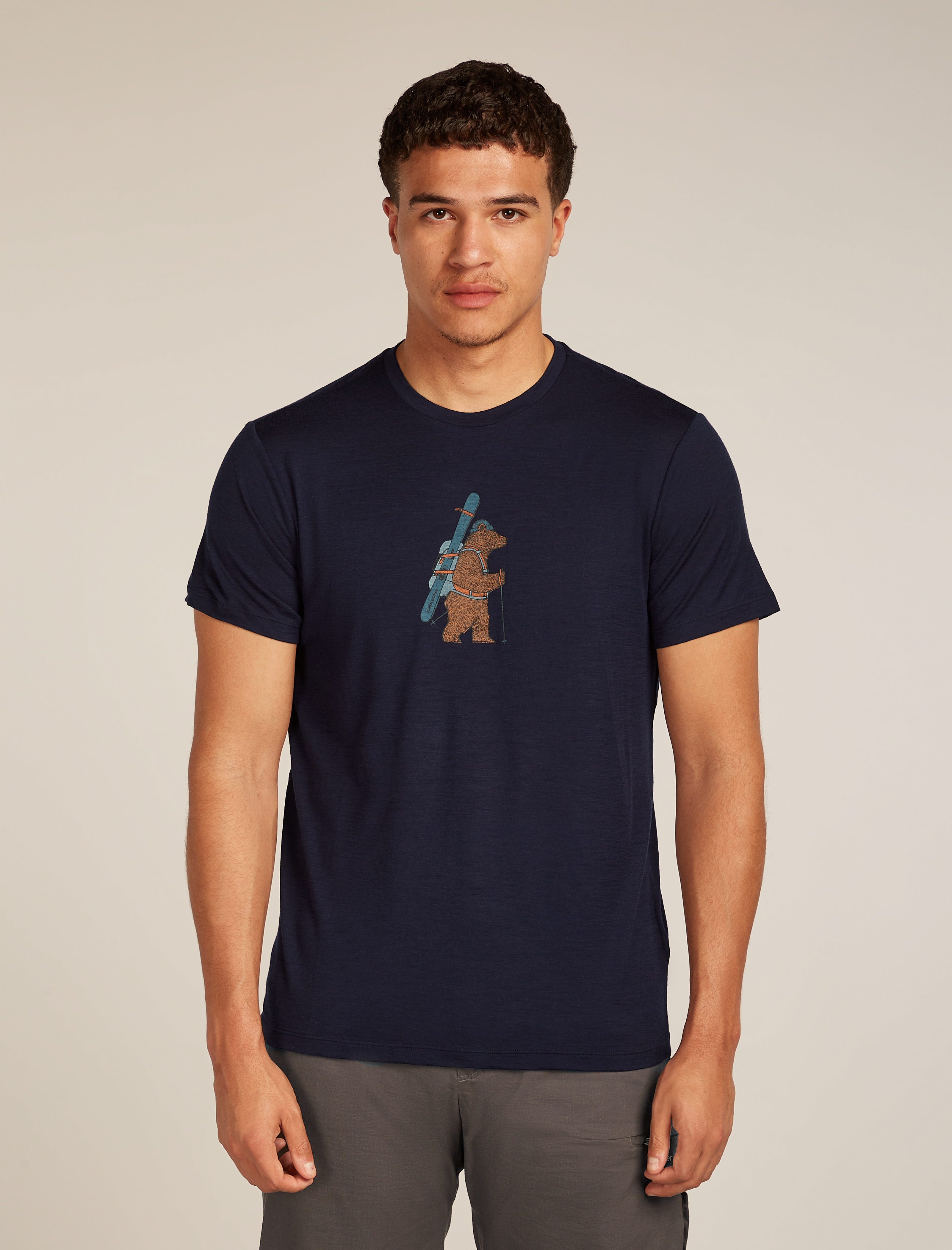 Das Men Merino 150 Tech Lite SS Tee Bear Tour von Icebreaker ist ein vielseitiges T-Shirt für Outdoor-Abenteuer und Alltag. Hergestellt aus weicher, leichter Merinowolle bietet es natürlichen Temperaturausgleich, Geruchsresistenz und angenehmen Tragekomfort. Das künstlerisch gestaltete Bärenmotiv auf der Brust verleiht dem Shirt einen markanten Look, während der klassisch geschnittene Schnitt optimale Bewegungsfreiheit bietet – ideal zum Wandern, Reisen oder fürs tägliche Tragen.