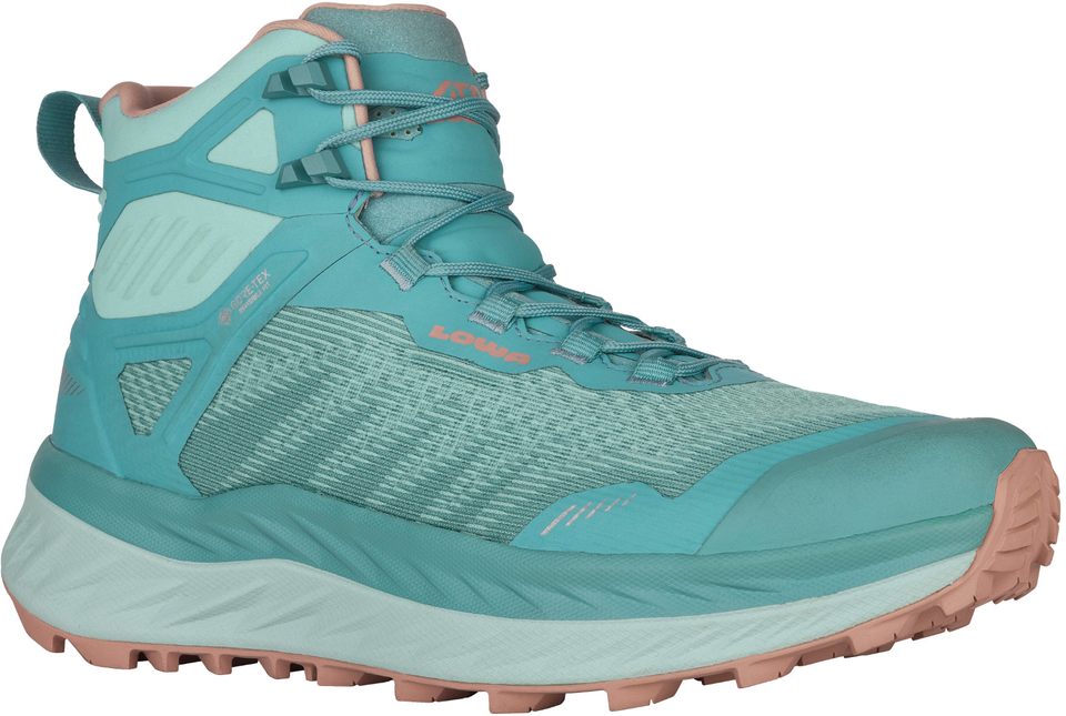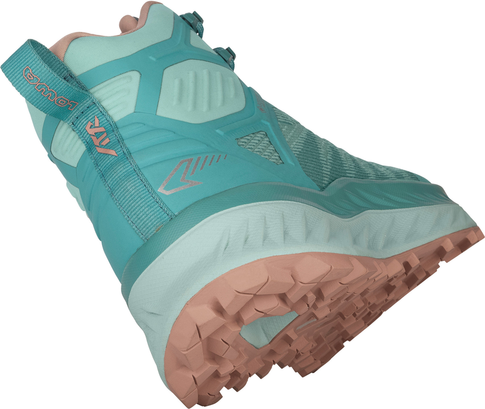Dank der hervorragenden Dämpfung und einer wasserdichten GORE-TEX-Membran ist der FORTUX GTX QC Ws speziell auf anspruchsvolle Langstrecken ausgelegt - sei es ein niveauvoller Trailrun oder eine ausgedehnte Speedhiking-Tour. Durch seinen viertelhohen Schaft bietet er darüber hinaus einen optimalen Knöchelsupport bei gleichzeitig geringem Gewicht. Die spezielle Konstruktion des Schaftes spiegelt sich auch in seiner verstärkt robusten Verarbeitung wider: Das Jacquard-Obermaterial gewährleistet durch seinen hohen Abriebwiderstand zuverlässige Performance als auch eine hohe Lebensdauer - essenziell für einen Schuh, der einer erhöhten Intensität ausgesetzt ist. Ein hervorragendes Maß an Dämpfung liefert die charakteristische LOWA® DYNEVA-Zwischensohle mit Rocker-Shape, 6 mm Sprengung und hohem Rückstellvermögen. Die bewährte LOWA® TRAC® ULTRA-Gummilaufsohle zeichnet sich durch ihre bidirektionale Stollenausrichtung aus und ermöglicht eine schnelle Beschleunigung als auch reaktionsfreudiges Verzögern. So eignet sich der Schuh nicht nur für ambitionierte Trailrunner, sondern auch für alle diejenigen, die grundsätzlich etwas dynamischer in den Bergen unterwegs sind.
