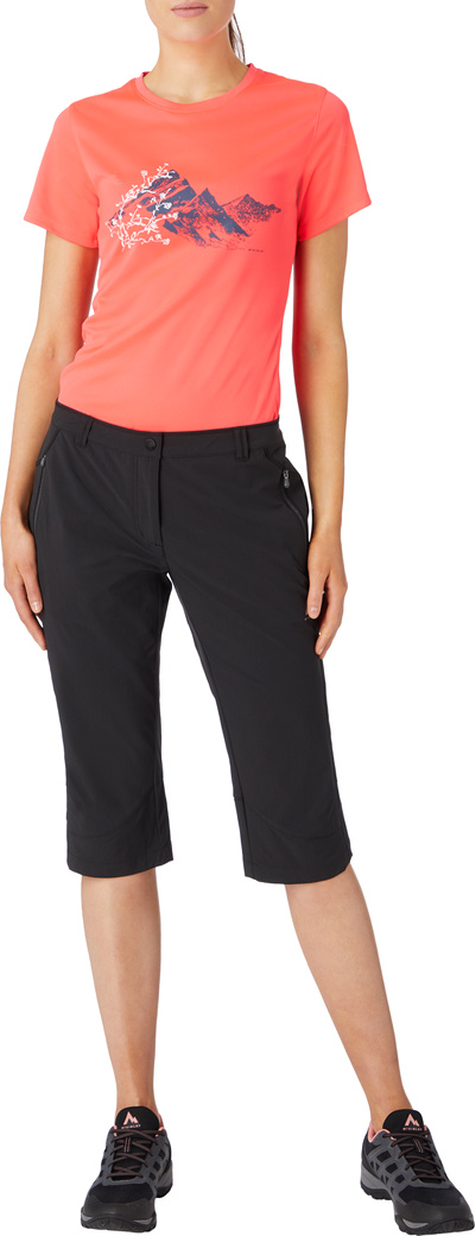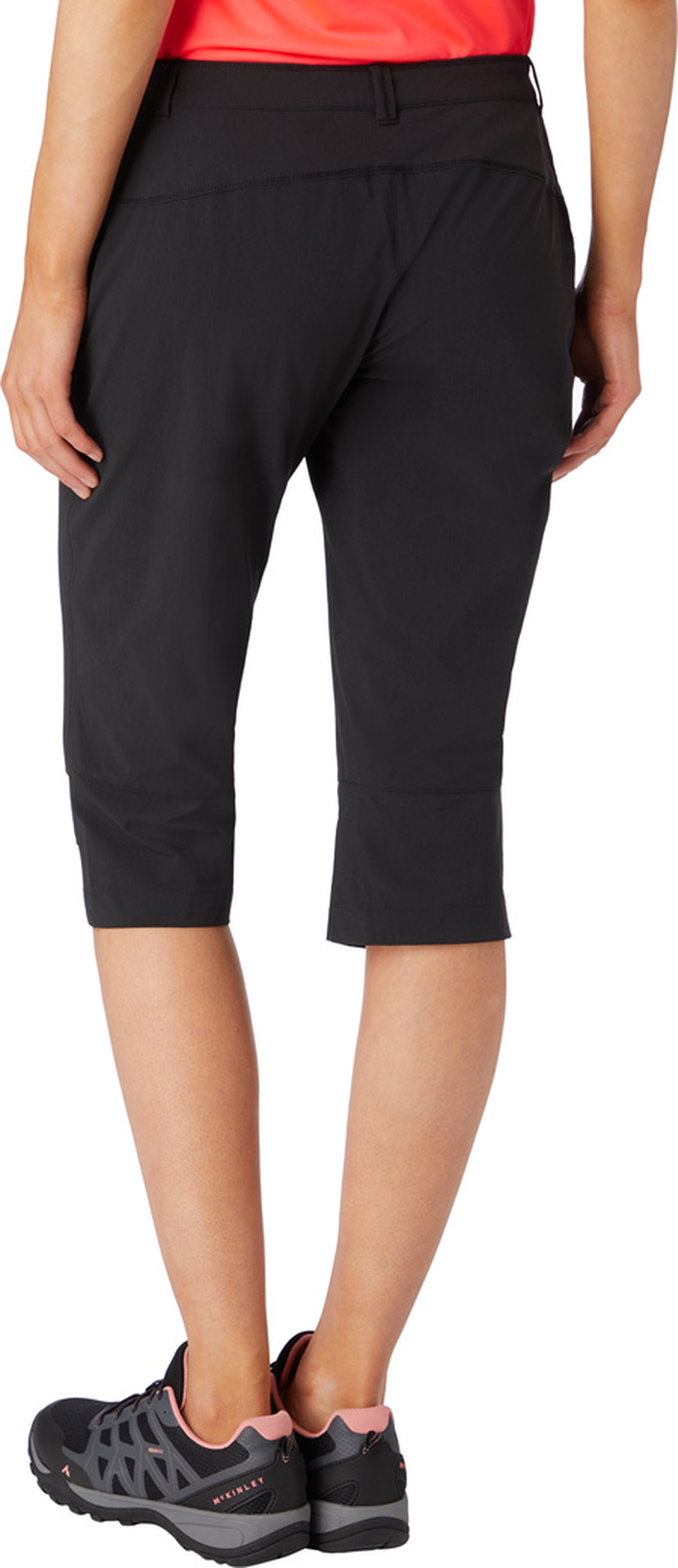Die Wanderhose Capty von McKINLEY präsentiert sich in athletisch körpernahem Schnitt und sommerfreundlicher Dreiviertellänge. Dank ihrer hochfunktionalen Ausstattung mit atmungsaktiven, geruchshemmenden sowie feuchtigkeitsregulierenden und besonders elastischen Eigenschaften verspricht sie auch bei langen Wanderungen an warmen Tagen bis zum letzten Meter ein angenehm frisches Körperklima. - schmale Passform - niedrige Leibhöhe - leichtes und atmungsaktives Nylon-Mischgewebe in elastischer Vier-Wege-Stretch-Qualität - feuchtigkeitsabweisende DRY PLUS ECO Technologie - geruchshemmend ausgestattet - seitliche Reißverschlusstaschen mit Netzfutter - Beine in Dreiviertellänge und mit vorgeformter Kniepartie - Bund mit Gürtelschlaufen und Druckknopfverschluss - verdeckter Reißverschluss - dezente Logo-Details - Pflegehinweis: Maschinenwäsche 30 Grad