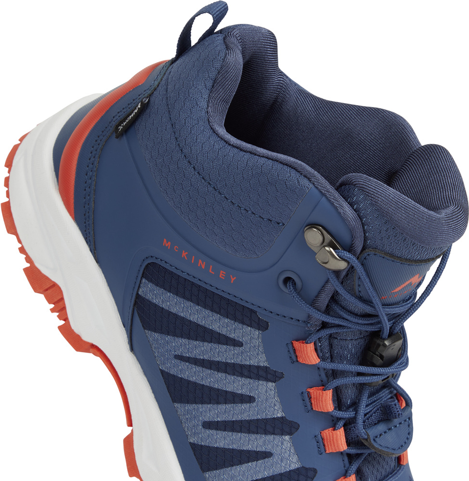 Mit den mittelhohen Wanderschuhen Kansas von McKINLEY sind Kinder komfortabel und sicher in der Natur unterwegs. Ihre AQUABASE-Halbsockenkonstruktion umschließt den Fuß und sorgt bei nassen Bedingungen für trockene Füße. Die Schuhe besitzen ein atmungsaktives Mesh-Obermaterial, eine herausnehmbare, dämpfende KIDSFIT-Einlegesohle sowie ein praktisches Schnellschnürsystem, das das An- und Ausziehen spielend einfach macht.