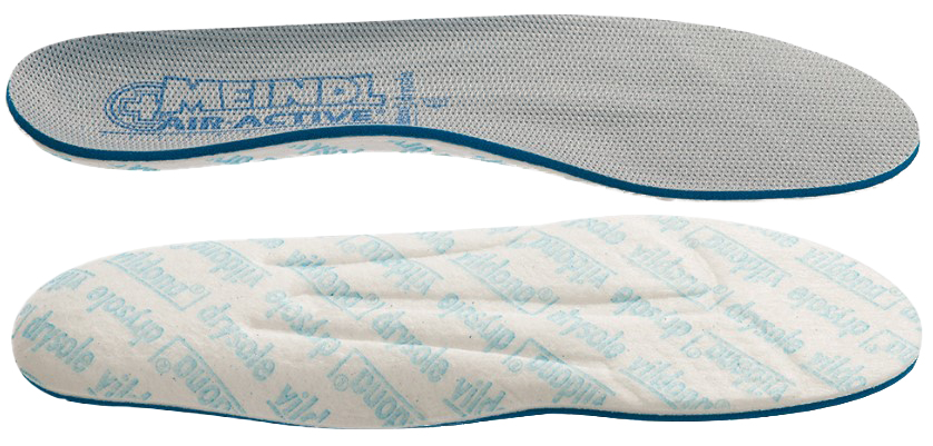 Hohe Saugeigenschaften mit Vildona® drysole Soft Print Schaum Hohe Dämpfung Schnelles Trocknen Das Air Active Soft Fußbett von Meindl ist eine Einlegesohle, welche Fußfeuchte bestens absorbiert, speichert und schneller trocknet als andere Materialien. Der Soft Print Schaum, der direkt ohne Klebstoffe auf das drysole Vlies aufgebracht wird, optimiert den Feuchtigkeitstransport, passt sich genau der Fußform an und dämpft über die gesamte Fussbettfläche. Das Vildona® drysole Material im unteren Bereich nimmt die Feuchtigkeit auf und transportiert sie nach unten weg.