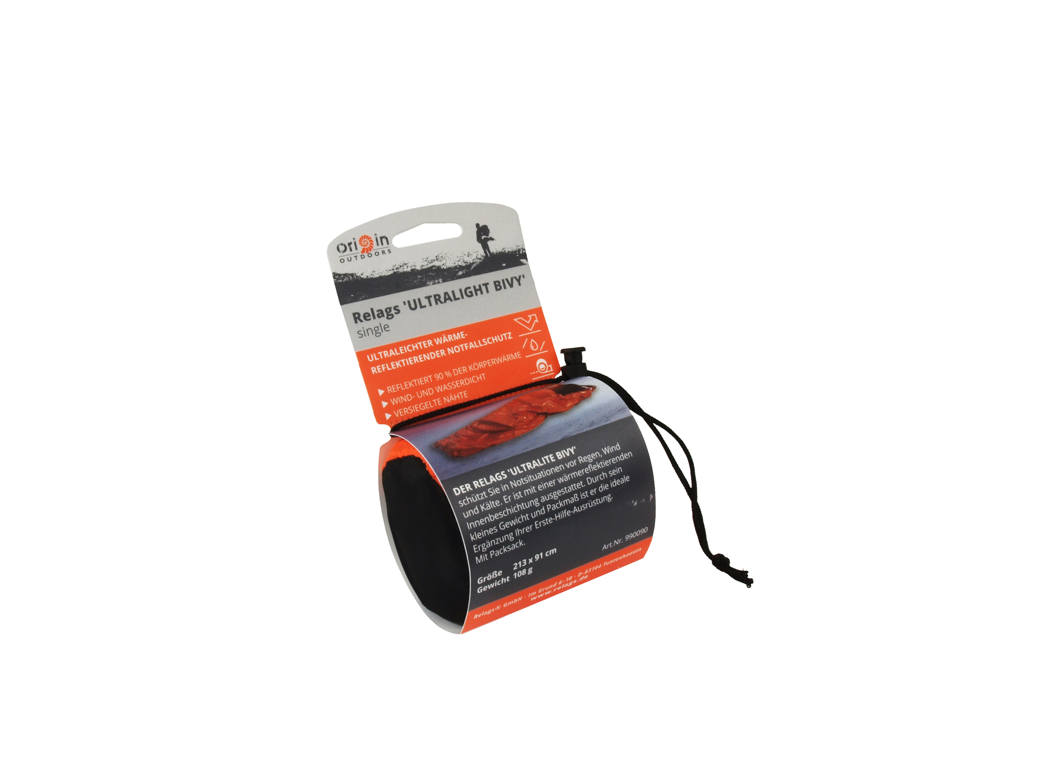 Die wind- und wasserdichte Folie reflektiert 90 % der Körperwärme. Sie ist stabiler als die Folie einer Rettungsdecke und durch die Sackform auch besser für ein Notbiwak geeignet. Der Ultralite Bivy sollte zu jedem Erste-Hilfe-Set gehören, um bei Bedarf entscheidende Hilfe zu bieten. Im Packsack aus Ripstop-Nylon hat noch etwas zusätzliche Notausrüstung - wie z. B. eine kleine Stirnlampe - Platz.