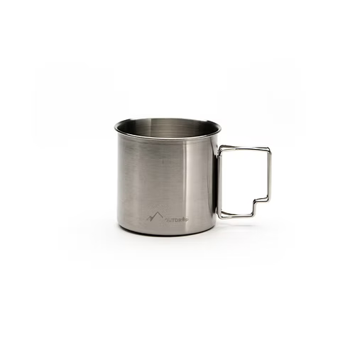 Edelstahltasse mit Faltgriff Kann direkt auf Kocher gestellt werden BPA Frei Geschmacks- und geruchsneutral Maße: 84 mm x 84 - 130 mm (mit Griff) x 82 mm Gewicht: 109 g