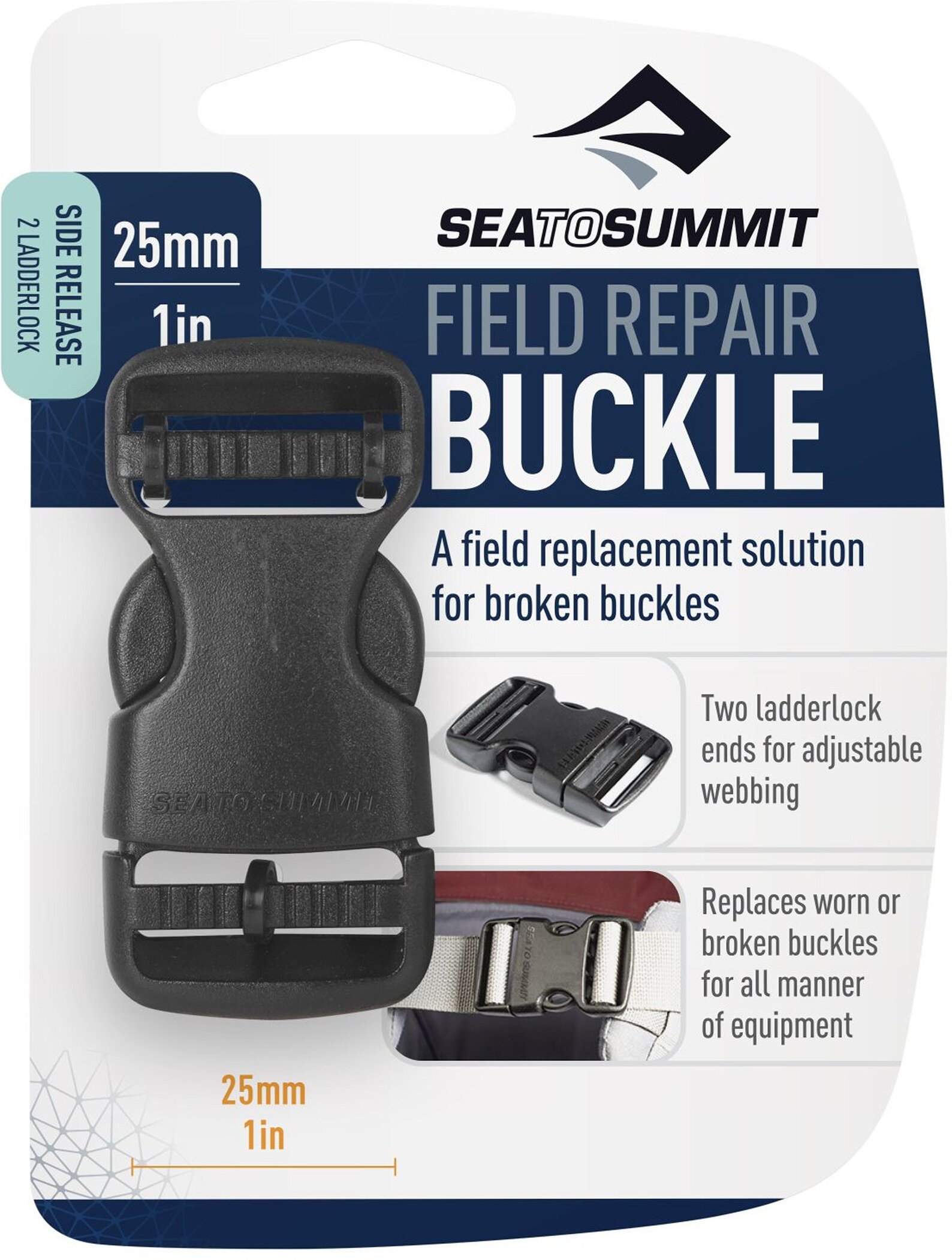 Sea to Summit Field Repair Buckles bieten endlich eine einfache Reparaturlösung für gebrochene oder abgenutzte Schnallen. Sie wurden so konzipiert, dass sie vor Ort mit einem Schraubendreher ausgetauscht werden können, aber im Gegensatz zu anderen Lösungen ist es nicht notwendig, nach deinem Abenteuer eine Ersatzschnalle einzunähen.
