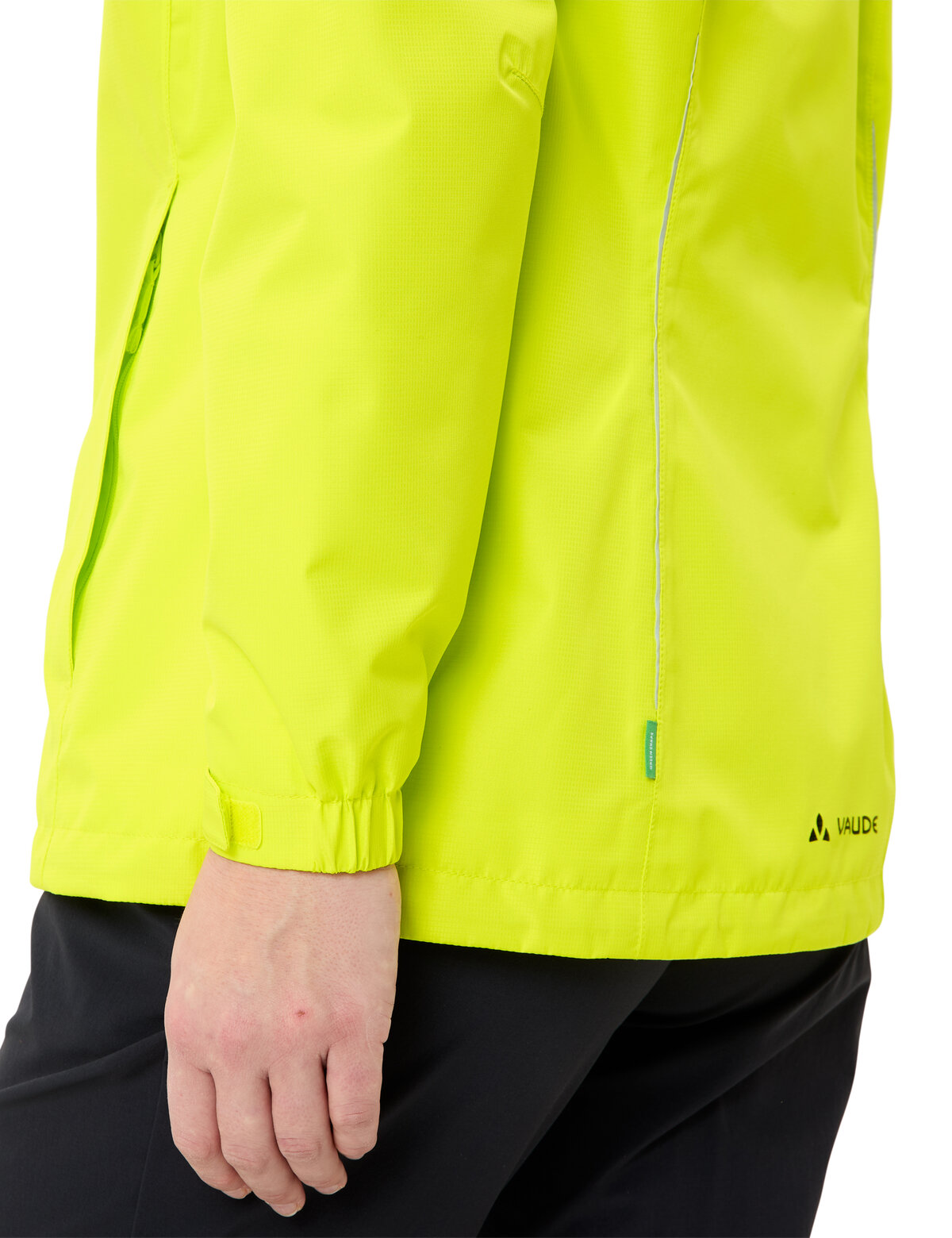 Umweltfreundlicher Regenschutz. Die leichte 2 Lagen-Regenjacke mit dünnem Netzfutter schützt Dich in Deinem Radalltag zuverlässig vor Nässe und Wind. Die Kapuze kann aufgerollt im Kragen verstaut werden. Mit reflektierenden Elementen. Das Material wird besonders umweltschondend nach dem bluesign®-Standard hergestellt. Dieses Produkt ist mit Eco Finish umweltfreundlich wasserabweisend ohne Fluorcarbone (PFC) hergestellt. Das VAUDE Green Shape-Label steht für ein umweltfreundliches, funktionelles Produkt aus nachhaltigen Materialien.