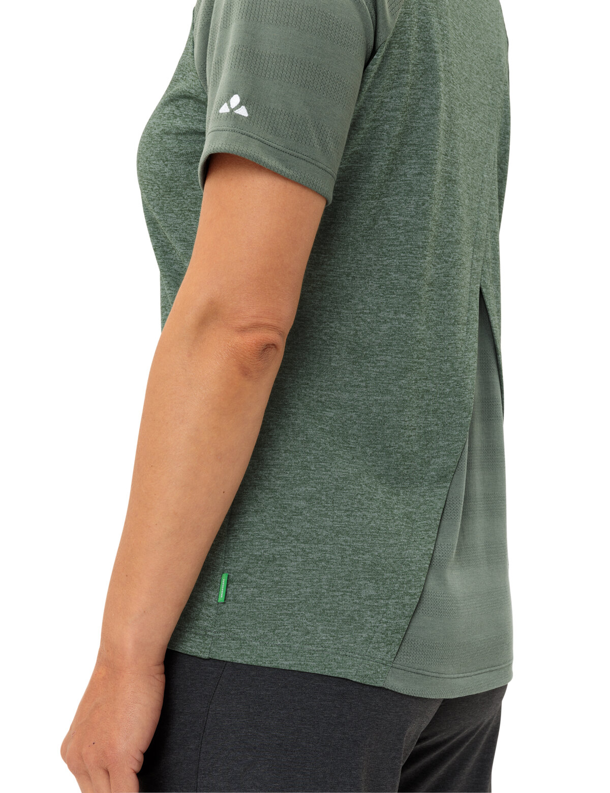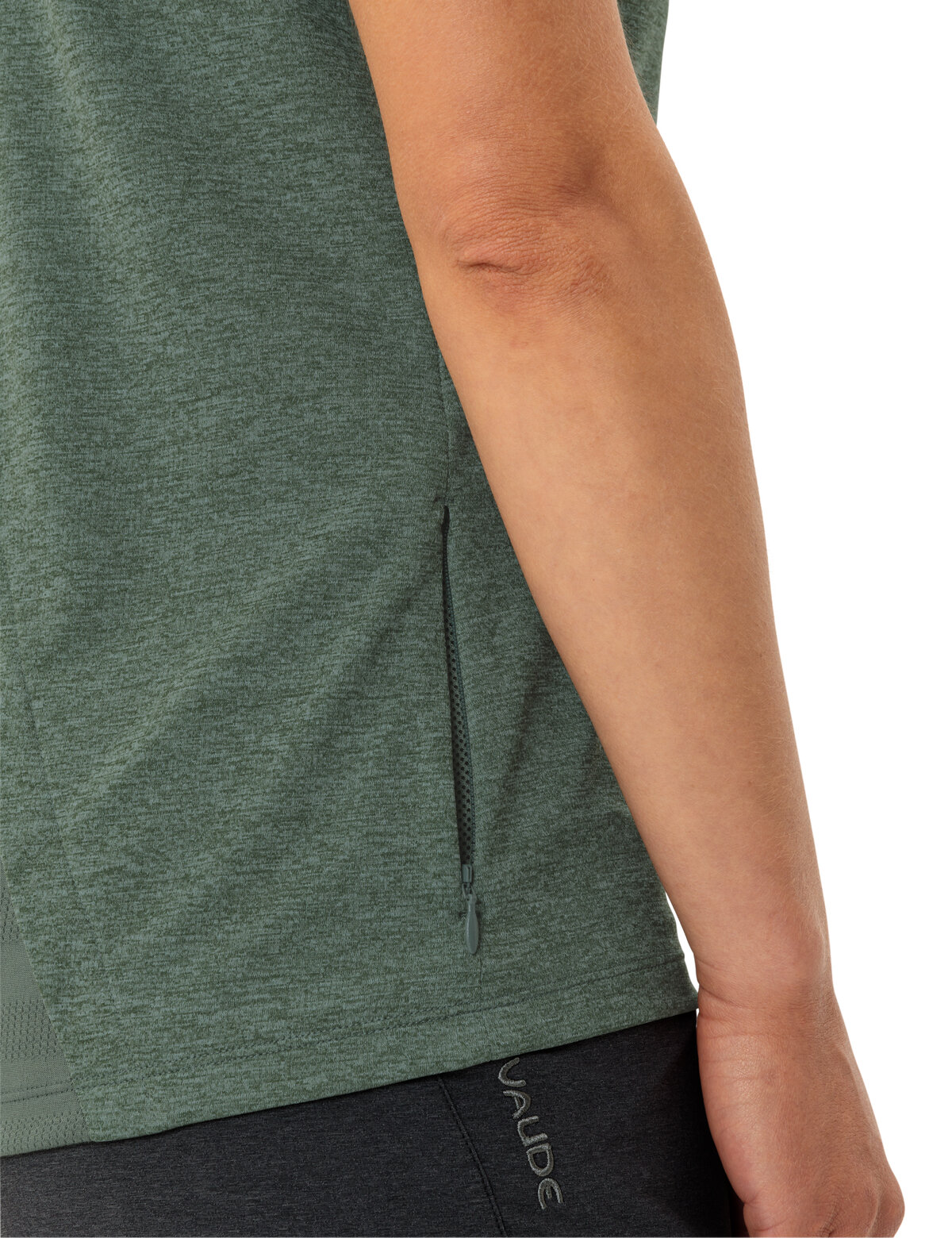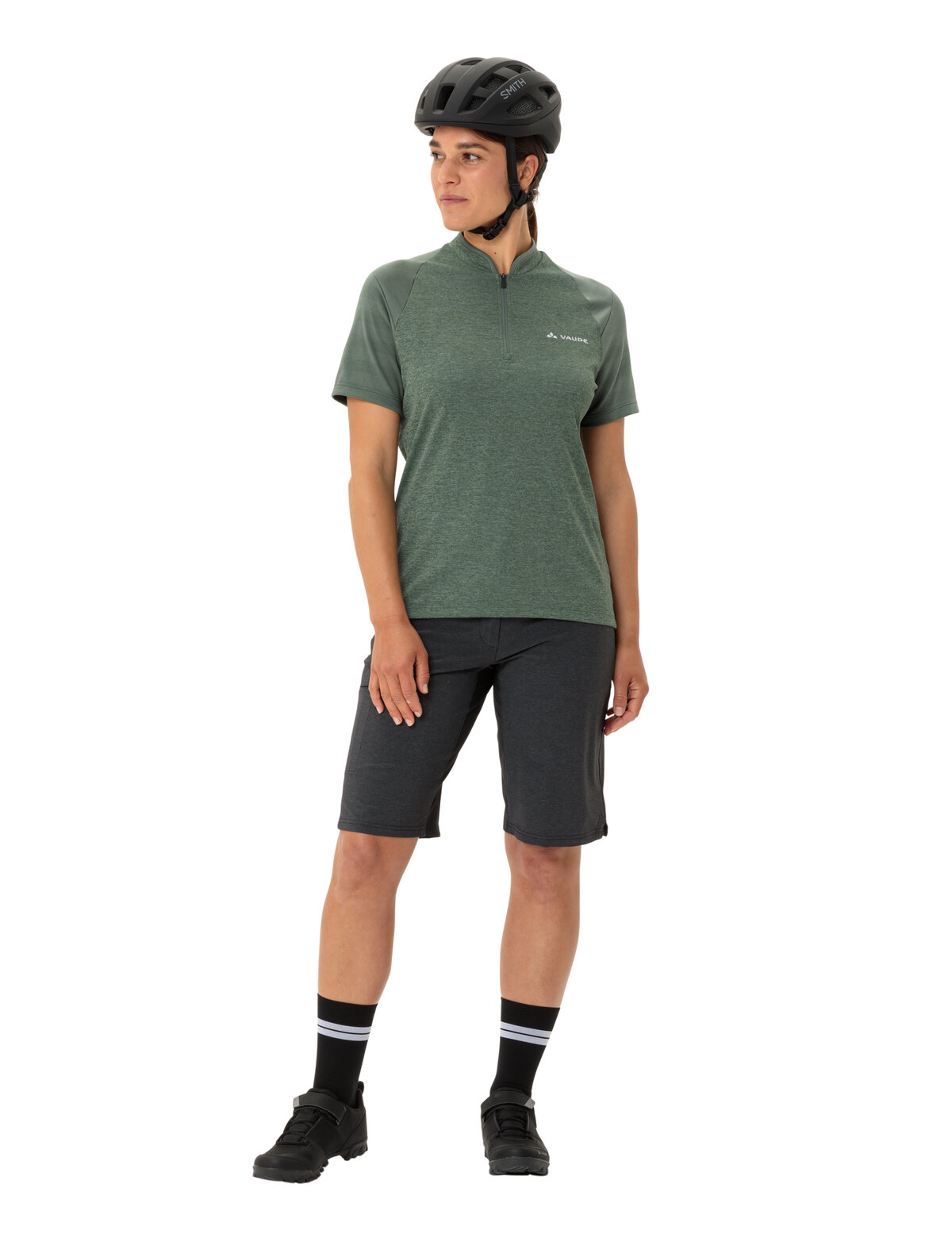 Bereit für eine Fahrrad-Tour? Dann schnell los mit dem Tamaro Halfzip Fahrrad Shirt für Damen mit Stehkragen, kurzem Front-RV und kleiner Reißverschluss-Tasche. Das Material trägt sich angenehm leicht und bietet höchste Funktionalität. Das am Rücken und im Schulterbereich eingearbeitete drirelease® Material mit Woll-Anteil sorgt für eine effektive Regulierung des Körperklimas. Es wirkt leicht kühlend und geruchshemmend. Das VAUDE Green Shape-Label steht für ein umweltfreundliches, funktionelles Produkt aus nachhaltigen Materialien.