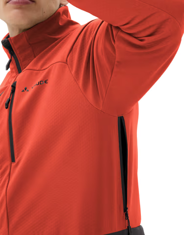 Zwei Dinge sind für eine Bikejacke essenziell: guter Windschutz und hohe Atmungsaktivität. Beides vereint die Qimsa Pro Fahrrad Softshelljacke für Herren mit Bravour. Das leichte Softshellmaterial ist mit einer hundertprozentig winddichten Membran ausgestattet – das schützt den Fahrer bei rasanten Abfahrten oder stürmischem Wind davor auszukühlen. Gleichzeitig sorgt die aufgeraute Struktur auf der Innenseite für eine ausgezeichnete Atmungsaktivität, gute Isolation und ein angenehmes Tragegefühl. Steigt der Puls vor Anstrengung, kann überschüssige Hitze durch die Unteramventilation problemlos entweichen. Platz für Accessoires ist in den drei Reißverschlusstaschen. Bei geöffnetem Reißverschluss unterstützen die beiden Seitentaschen mit luftigem Mesh auf der Innenseite zusätzlich die Temperaturregulation. Und auch mit leichten Regenschauern wird die Qimsa Pro Fahrrad Softshelljacke fertig: Ihr Oberstoff ist mit Eco Finish PFC-frei wasser- und schmutzabweisend ausgerüstet. Das VAUDE Green Shape-Label steht für ein umweltfreundliches, funktionelles Produkt aus nachhaltigen Materialien.