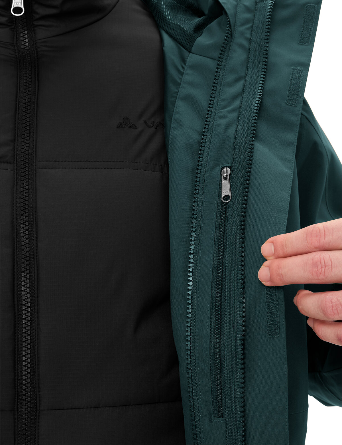 Die Neyland Doppeljacke für Herren ist ein echter Allrounder im Herbst und Winter. Mit ihrem lässigen und modernen Design lässt sie sich gut und gerne auf einer Wandertour im Herbst und Winter tragen. Die Außenjacke ist wind- und wasserdicht und trotzt so Regen und Schnee. Die atmungsaktive Membran transportiert bei schweißtreibenderen Aktivitäten Feuchtigkeit nach außen und sorgt so für einen angenehmen Tragekomfort. Die Kapuze mit hohem Kragen schützt zuverlässig vor Wind und Kälte, die Ärmelbündchen können je nach Wetter eng oder locker gestellt werden. Den unteren Saum kann man ebenfalls aus den Taschen heraus enger stellen. In den beiden gefütterten Reißverschlusstaschen der Neyland Doppeljacke finden eine Mütze oder andere Kleinigkeiten ihren Platz, dazu gibt es noch eine Innentasche. Die Innenjacke ist eine mit Primaloft© gefütterte Isolationsjacke, die auch bei eisigen Temperaturen für wohlige Wärme sorgt. Auch sie verfügt über zwei Fronttaschen und kann wunderbar getrennt von der Außenjacke in der Übergangszeit getragen werden. Das VAUDE Green Shape-Label steht für ein umweltfreundliches, funktionelles Produkt aus nachhaltigen Materialien.
