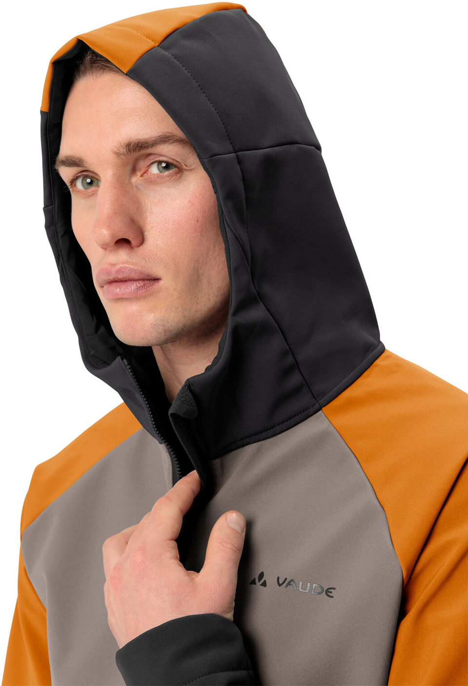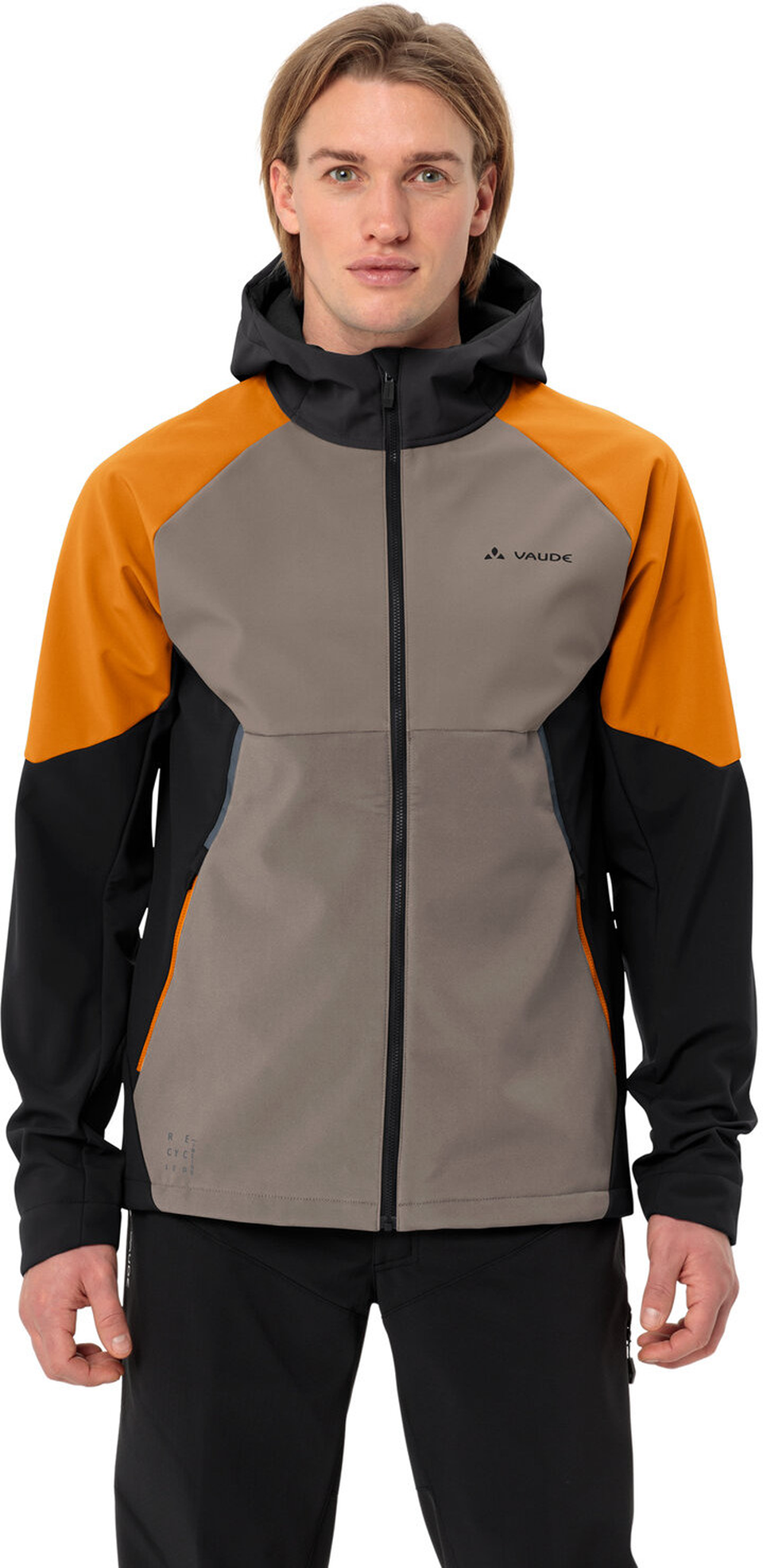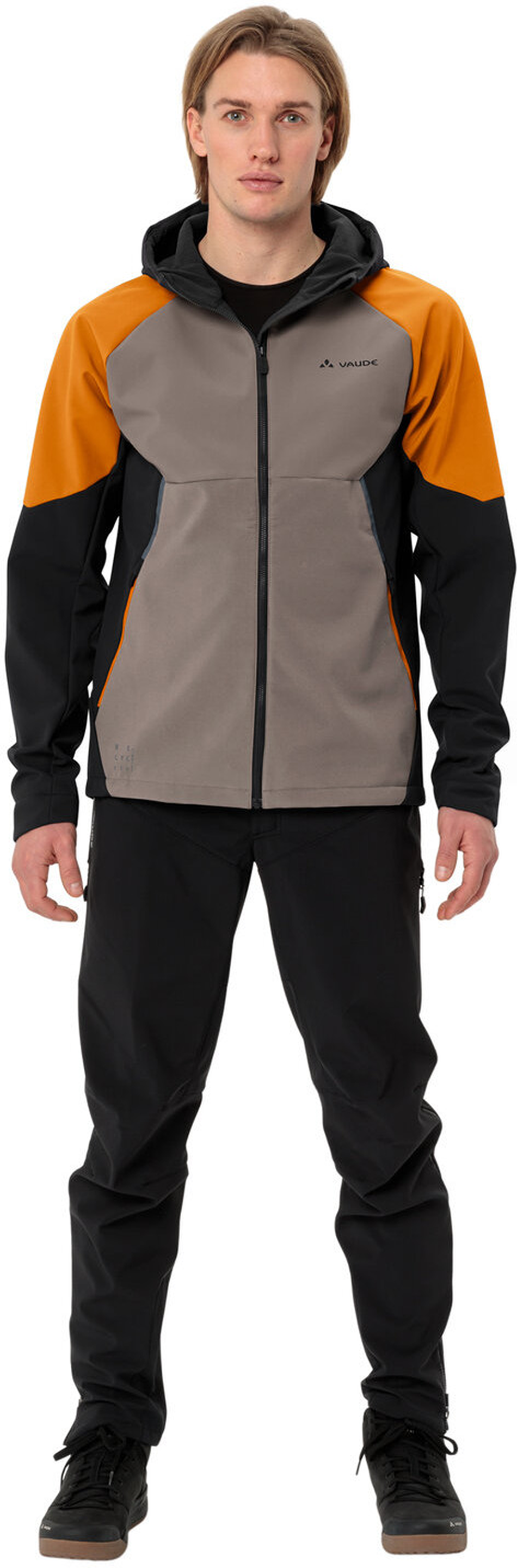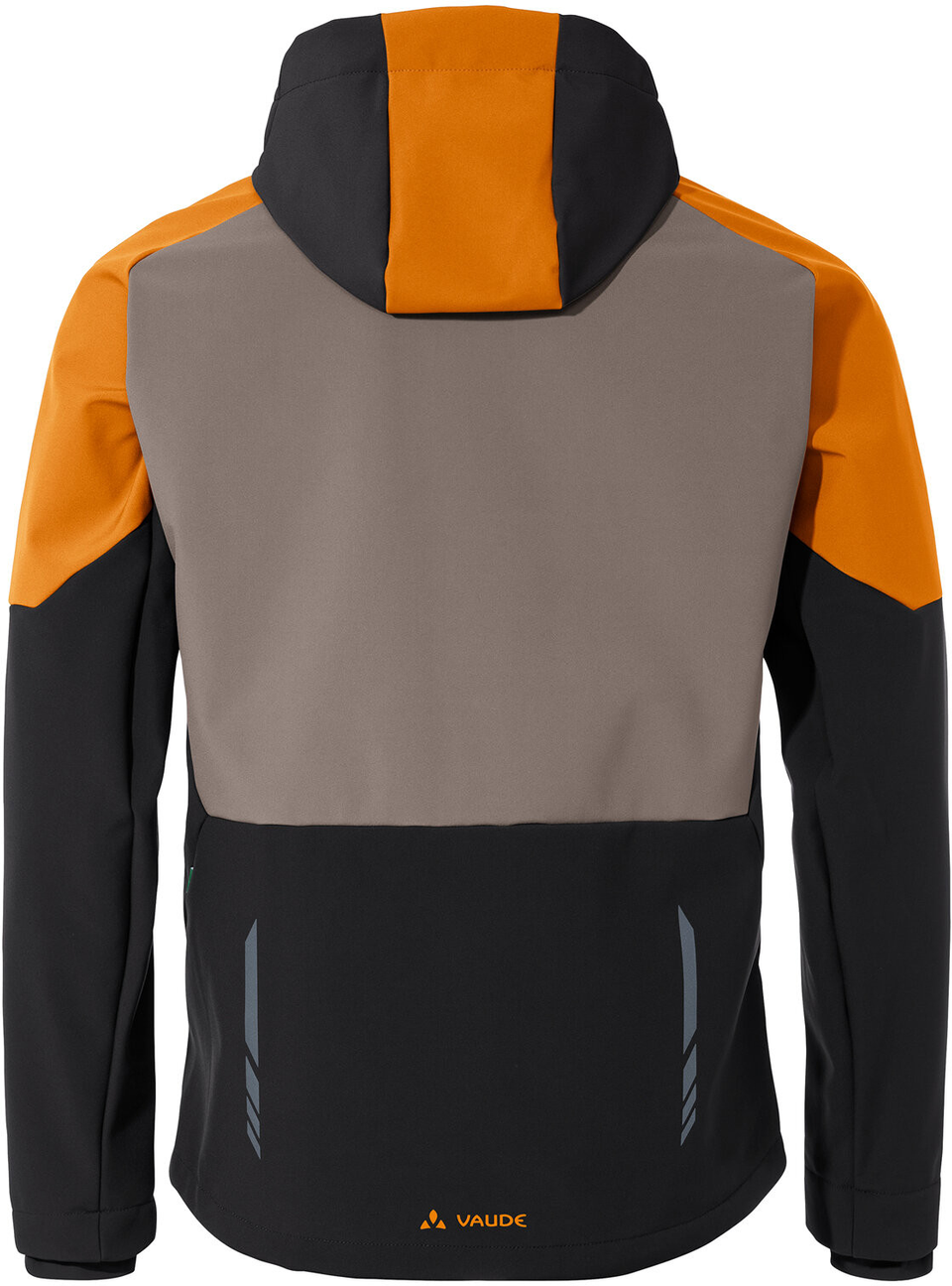 Die Herren Qimsa Softshell Jacket ist eine äußerst vielseitg einsetzbare Softshelljacke, die zwar primär für den Einsatz auf dem Fahrrad konstruiert wurde, sich aber auch als Outdoorjacke bestens eignet. Dank des wind- und wasserdichten Materials hält sie eisige Böen und leichten Regen ab und schützt den Körper vor Auskühlung. Der speziell auf die Anforderungen beim Radfahren optimierte Schnitt, die einstellbare Kapuze und reflektierende Elemente machen diese Männer Bikejacke zu einem gerne verwendeten Kleidungsstück in der Übergangszeit. In Kombination mit einem Base- und Midlayer eignet sich diese Fahrradjacke auch im Hochwinter zum Radfahren. Das VAUDE Green Shape-Label steht für ein umweltfreundliches, funktionelles Produkt aus nachhaltigen und bluesign® zertifizierten Materialien.