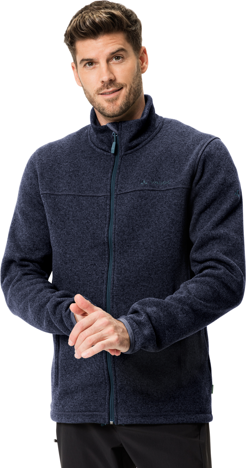 Diese Fleecejacke für Herren in modischer Strickoptik ist der ideale Begleiter, wenn die Temperaturen wieder in den Keller gehen. Das umweltfreundliche Fleece-Material, das zu 100 % aus recycelten PET-Flaschen hergestellt wurde, hält auch bei schweißtreibenden Aktivitäten warm und trocken. Dabei fühlt sich das Fleece angenehm an und ist sehr strapazierfähig. Die Fleecejacke für Herren engt nicht ein und kann als wärmende Schicht unter der Regen- oder Winterjacke getragen werden, reicht bei einer Wanderung im Herbst aber auch allein aus. Die flachen Nähte im Schulterbereich der Rienza Jacket III sorgen für einen hohen Tragekomfort, auch wenn ein Rucksack auf den Schultern sitzt. In den beiden seitlichen Reißverschlusstaschen der Herren Fleecejacke werden kalte Hände wieder warm, bieten aber auch Platz für Kleinigkeiten. Der Kordelzug im Saum ist durch die Taschen regulierbar, elastische Ärmelbündchen sorgen für optimalen Sitz. Das VAUDE Green Shape-Label steht für ein umweltfreundliches, funktionelles Produkt aus nachhaltigen und bluesign® zertifizierten Materialien. Als Mitglied mit Leader Status bei der unabhängigen Organisation Fair Wear engagiert sich VAUDE für faire Arbeitsbedingungen und faire Löhne. Zudem ist dieses Produkt klimaneutral: Die Emissionen aus Materialien, Herstellungsprozess und Versand wurden ganzheitlich ermittelt und systematisch reduziert. Aktuell nicht vermeidbare Emissionen wurden vollständig über die unabhängige Non-Profit-Organisation „myclimate“ kompensiert.