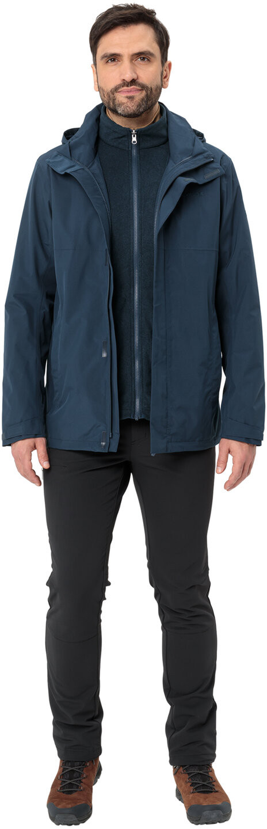 Eine praktische Wanderjacke für alle, die einen wetterfesten und sportlichen Begleiter suchen: Die Rosemoor 3in1 Jacke für Herren. Die Außenjacke hat eine wasser- und winddichte Membran, die locker mit wechselhaftem Bergwetter zurechtkommt. Damit Kopf und Nacken beim Wandern vor Regen und Wind geschützt sind, lässt sich die regulierbare Kapuze rasch aus dem Kragen holen. Für zusätzlichen Wärmeschutz kann der Saum der 3in1 Jacke für Herren durch die Taschen hindurch enger gestellt werden. Die bequeme Innenjacke aus angerautem Fleece wärmt den Körper angenehm. Beide Jacken können getrennt voneinander getragen werden. Und durch die Kombinierbarkeit der beiden Jacken wird eine sehr große Bandbreite an Wetter- und Temperaturbedingungen abgedeckt. Der Frontreißverschluss der Außenjacke ist leicht zu reparieren, was die Jacke noch langlebiger macht. Das VAUDE Green Shape-Label steht für ein umweltfreundliches, funktionelles Produkt aus nachhaltigen und bluesign® zertifizierten Materialien.