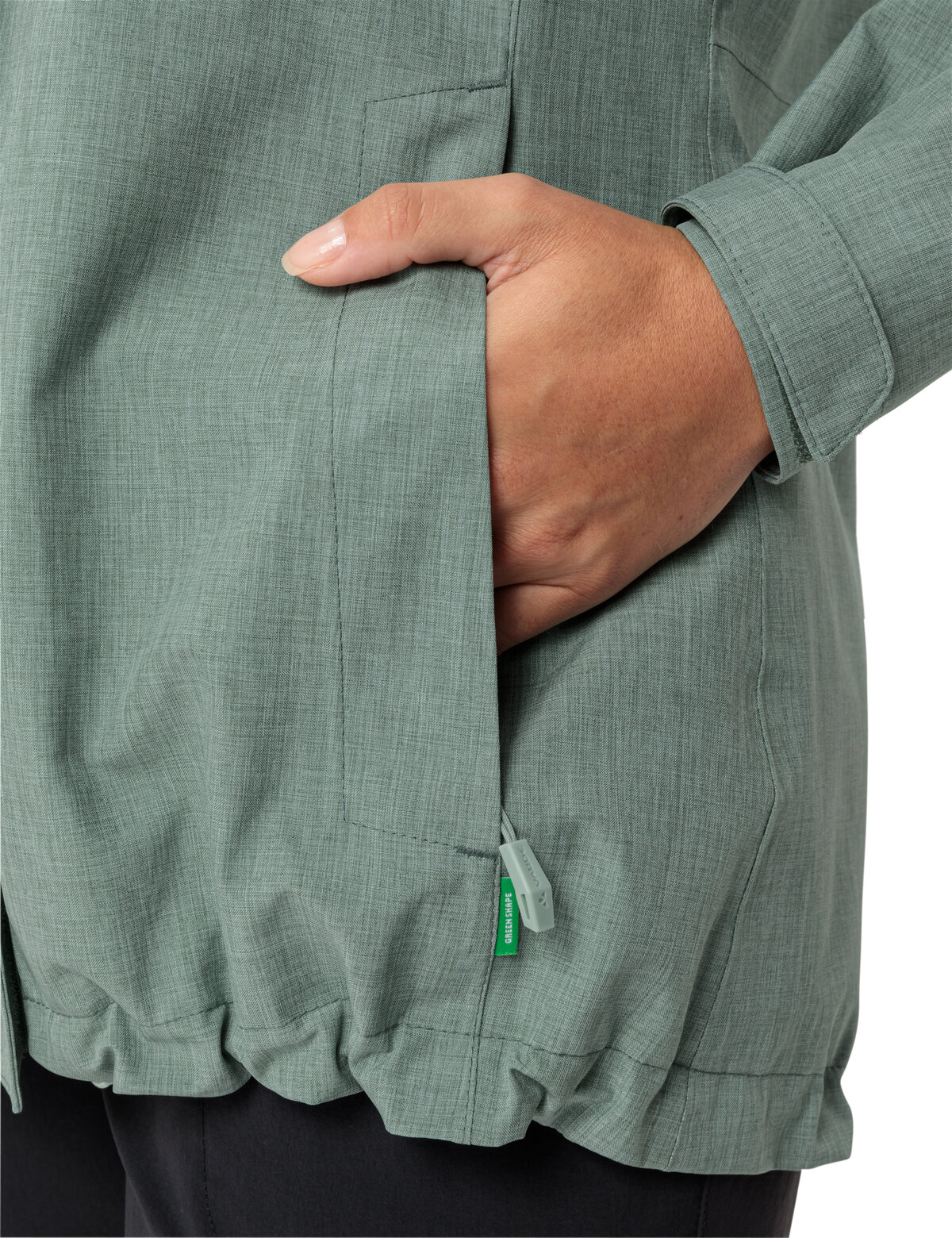 Nachhaltig, funktional, vielseitig und schick: Die Rosemoor Jacket II ist eine Damen-Regenjacke für alle Fälle und vielseitig einsetzbar. Sie schützt zuverlässig vor Wind und Wetter und ist dank der Ceplex-Active Membran hoch atmungsaktiv. Das Außenmaterial besteht zu 100 % aus recyceltem Polyester und auch im Innenfutter wurden anteilig recycelte Materialien verwendet. Damit ist die Regenjacke für Damen rundum umweltfreundlich und sieht dank der modischen Melange-Optik richtig gut aus. Ärmelbündchen, Saum und Kapuze sind individuell regulierbar. Wenn die Kapuze nicht gebraucht wird, kann sie schnell und einfach im Kragen der Regenjacke für Damen verstaut werden. Dieses Produkt ist mit Eco Finish umweltfreundlich wasserabweisend ohne Fluorcarbone (PFC) hergestellt. Das VAUDE Green Shape-Label steht für ein umweltfreundliches, funktionelles Produkt aus nachhaltigen und bluesign® zertifizierten Materialien.