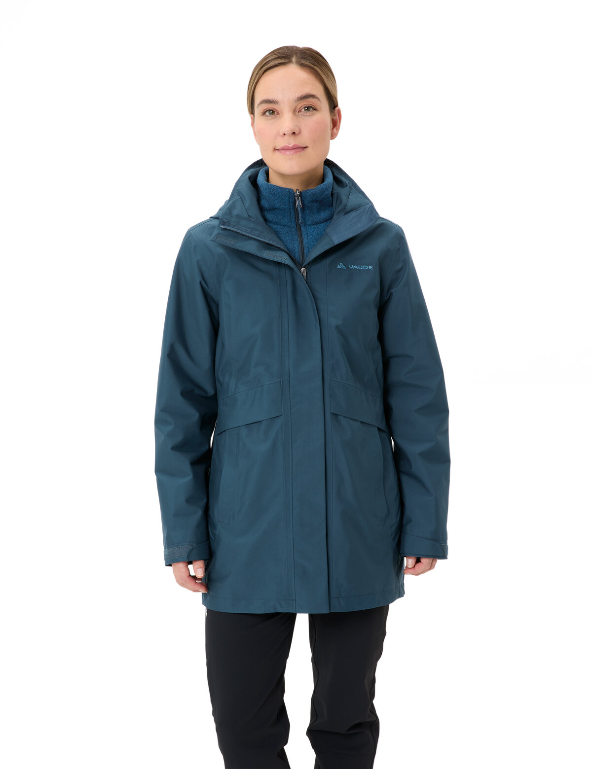 Es gibt kein schlechtes Wetter, es gibt nur falsche Kleidung. Klingt nach Futter fürs Phrasenschwein, ist aber wahr. Egal ob Schnee, Regen oder ein Mix aus beidem – der multifunktionale Idris IV 3in1 Parka für Damen kommt mit jedem Winterwetter zurecht. Und dank seines eleganten, cleanen Looks ist er auch absolut stadt- und alltagstauglich. Die lang geschnittene Außenjacke schützt dank absolut wasser- und winddichter Ceplex-Active-Membran bis zum Gesäß und zu den Oberschenkeln vor Wind und Wetter. Zusätzlich ist das Außenmaterial des Idris IV 3in1 Damenparka mit Eco Finish PFC-frei wasser- und schmutzabweisend ausgerüstet. Die regulierbare Kapuze verschwindet bei Nichtgebrauch platzsparend im Kragen, drei Taschen bieten jede Menge Platz für Geldbörse, Smartphone und andere Accessoires. Für die nötige Wärme an frostigen Tagen sorgt die Innenjacke mit zwei Eingrifftaschen aus kuschligem, hochflorigem Fleece. Wer es etwas leichter mag, kann auch den separat erhältlichen Idris Fleece Hoodie für Frauen in die Außenjacke einzippen – etwa bei etwas anstrengenderen Winterwanderungen oder in der Überganszeit. Natürlich können beide Jacken aber auch solo getragen werden – so ist frau von Herbst bis Frühjahr für jedes Wetter bestens gerüstet. Das VAUDE Green Shape-Label steht für ein umweltfreundliches, funktionelles Produkt aus nachhaltigen Materialien.