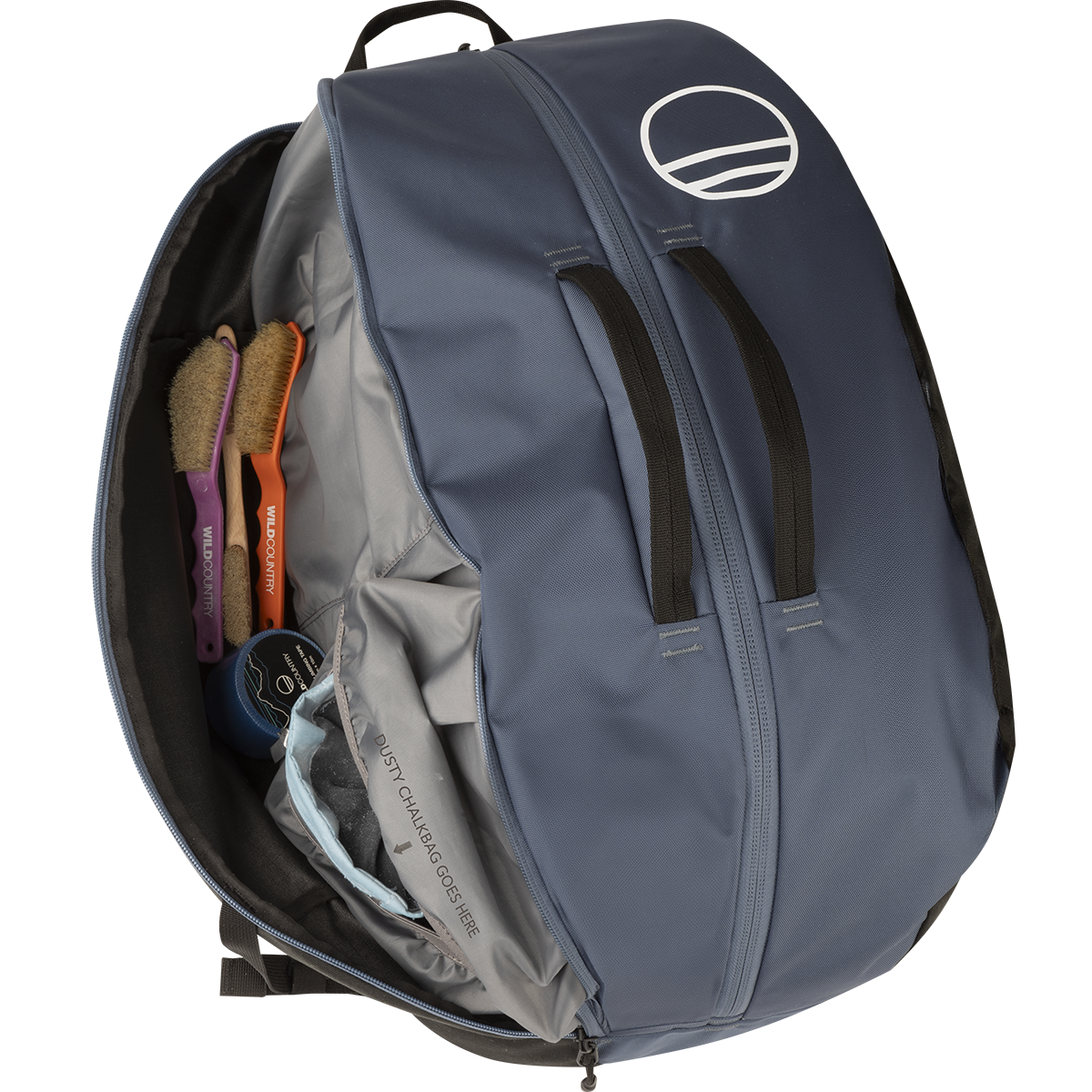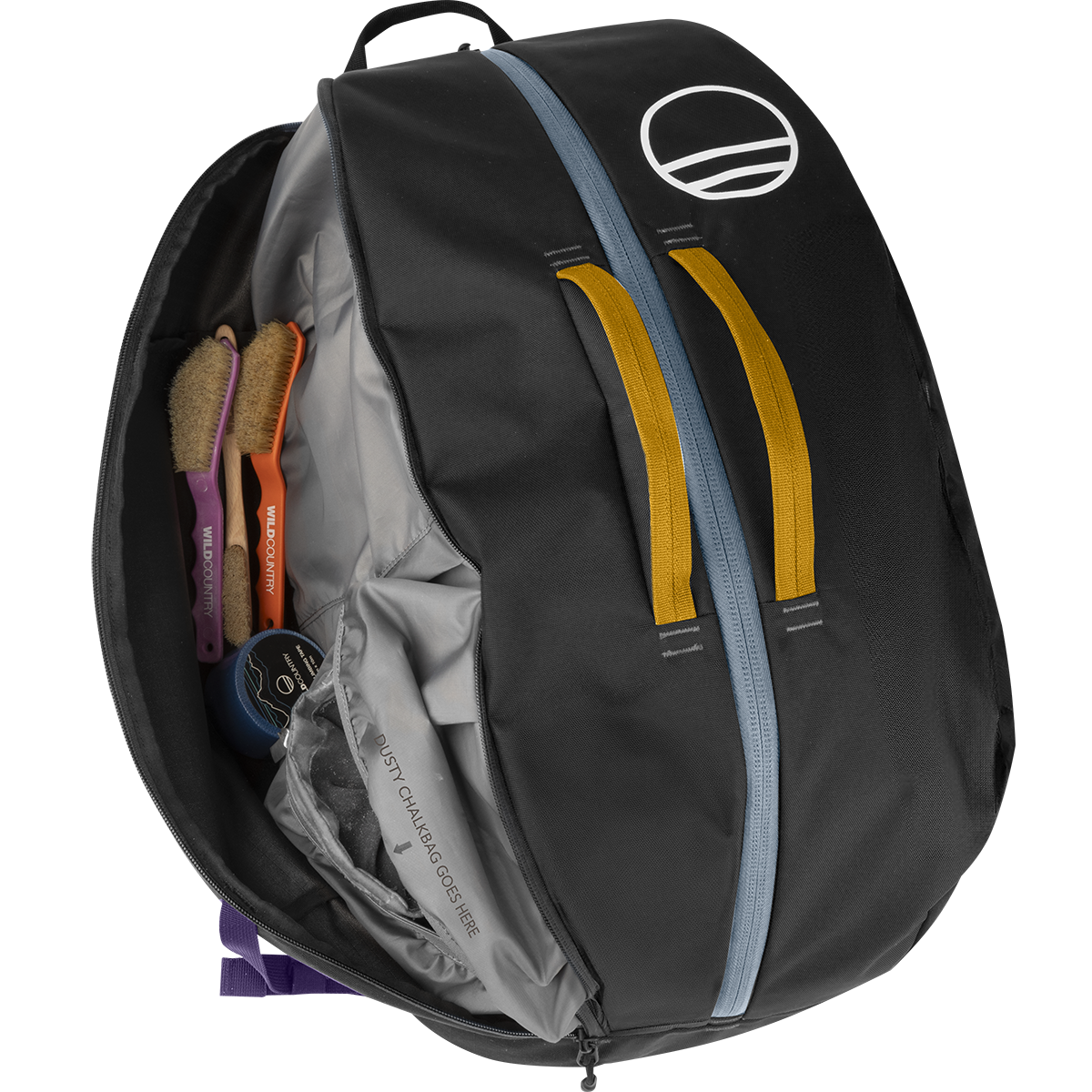 Der Movement Rucksack ist eine stylische und leicht zugängliche Lösung für den Seiltransport mit viel Platz für all deine Kletterutensilien. Der robuste Reißverschluss des Hauptfachs lässt sich nach oben öffnen und bietet dir uneingeschränkten Zugang. Eine integrierte Plane schützt dein Seil vor Schmutz und Staub, und an beiden Enden befinden sich farbige Befestigungspunkte für ein besseres Seilmanagement. Ein großzügiger Seitenreißverschluss ermöglicht den Zugang zu einem Seitenfach, in dem du schmutzige Kleidung o. Ä. getrennt aufbewahren kannst. Außerdem gibt es eine spezielle Tasche mit Gummizug für deinen Chalkbag, um den Staub von der restlichen Ausrüstung fernzuhalten. Du hast die Wahl: Dank der verdeckbaren Schultergurte, des verstellbaren Brustgurts und der verstärkten Griffe an der Oberseite kannst du ihn entweder als Rucksack oder als Sporttasche tragen. Die vier seitlichen Kompressionsgurte dienen auch dazu, ein Seil sicher über dem Rucksack zu befestigen.