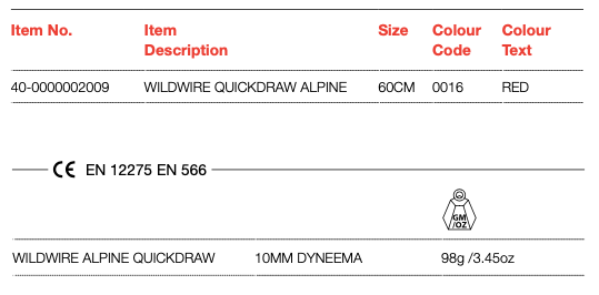 Die Wildwire-Karabiner besitzen die I-Beam-Konstruktion, die ein geringeres Gewicht bei gleichbleibender Bruchlast ermöglicht. Der leichtläufige Drahtschnapper ist zweifach bietet optimalen Grip beim Ein- und Aushängen. Die leichte 10 mm breite Dyneema-Schlinge ist wetter- und abriebfest und zeichnet sich durch ein besseres Bruchlast-Gewicht-Verhältnis gegenüber Standard-Nylongewebe aus. Durch ihren geringen Durchmesser eignet sie sich optimal auch zum Fädeln von Sanduhren und zum Verlängern von Zwischensicherungen. Heißgeschmiedete I-Beam-KonstruktionKarabiner mit Drahtschnapper für maximale Gewichtseinsparung60cm lange Dyneema-Schlinge mit 10mm Breite und 22kN Bruchlast Karabiner: Bruchlast in Längsrichtung: 27kN | in Querrichtung 8 kN | offen 9 kN | Karabineröffnung: 26mm